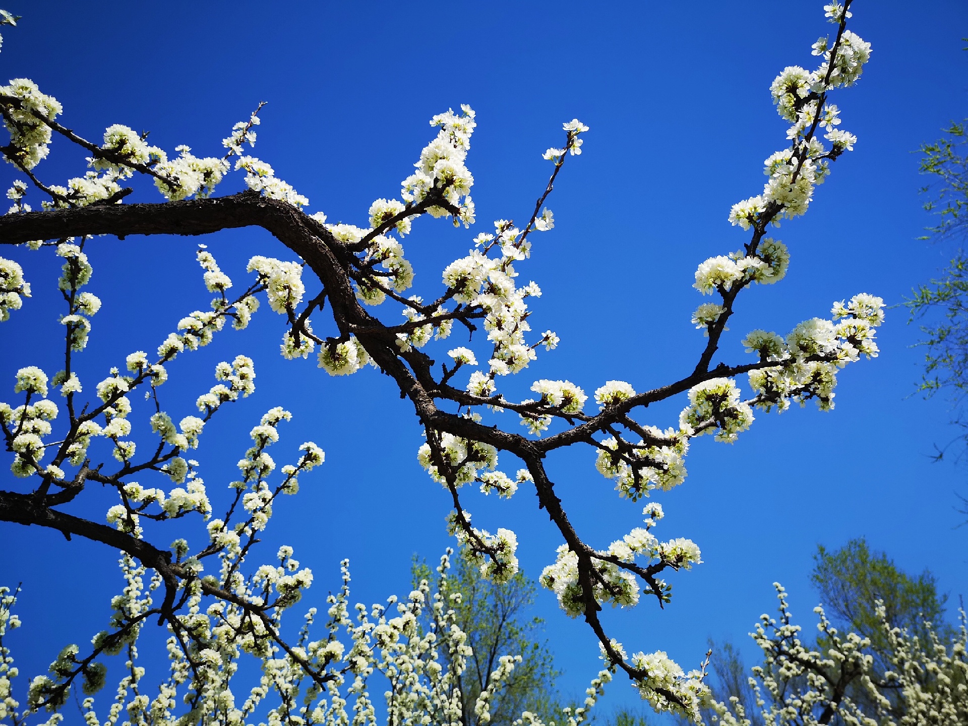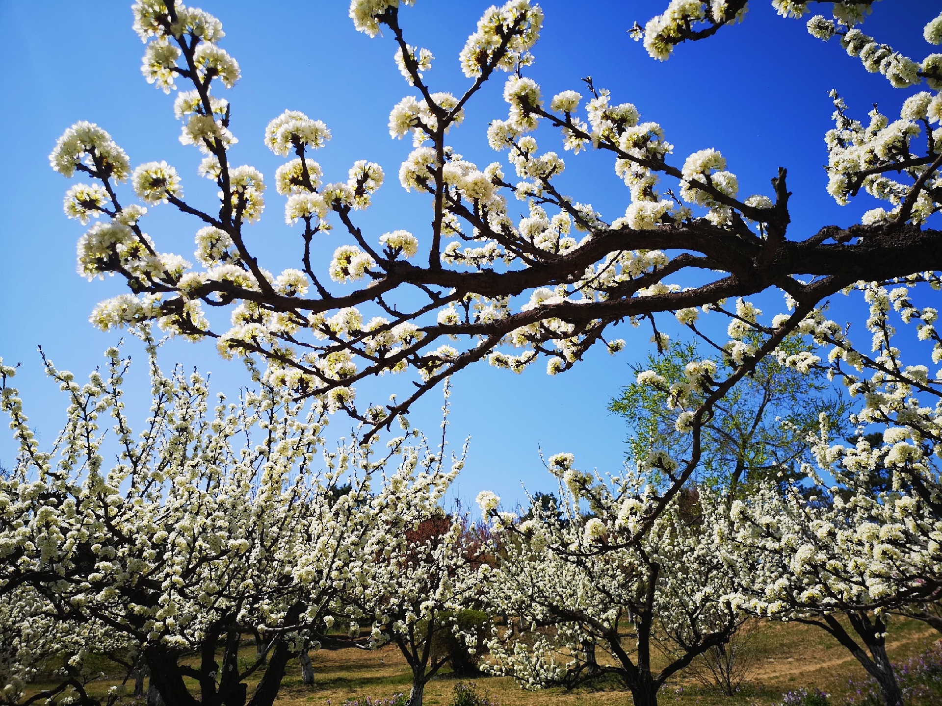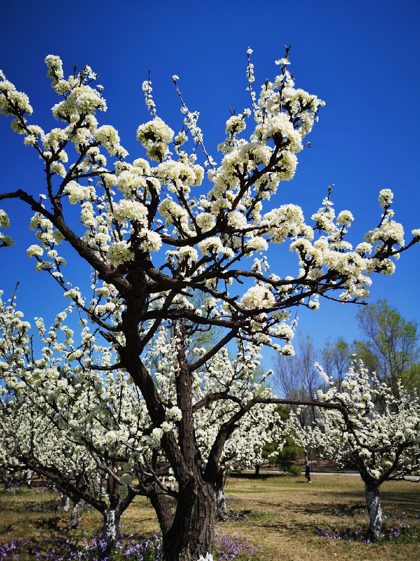 奥林匹克森林公园有一大片好看的李花,树形漂亮,花团锦簇。