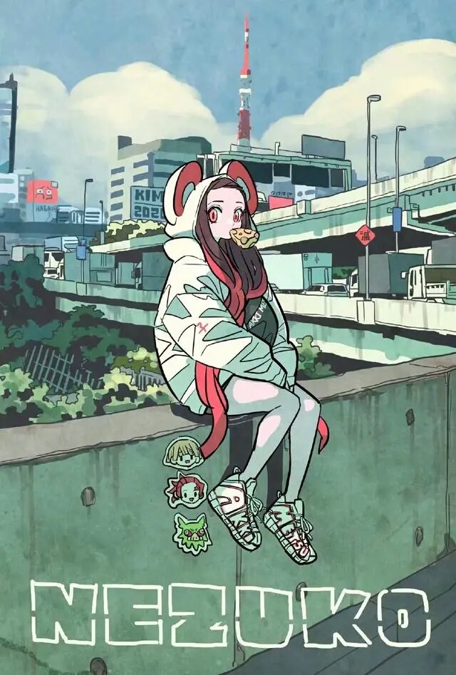 鬼灭之刃现代版插画,女装猪猪真的是太可爱了!(≧▽≦)😍😍😍