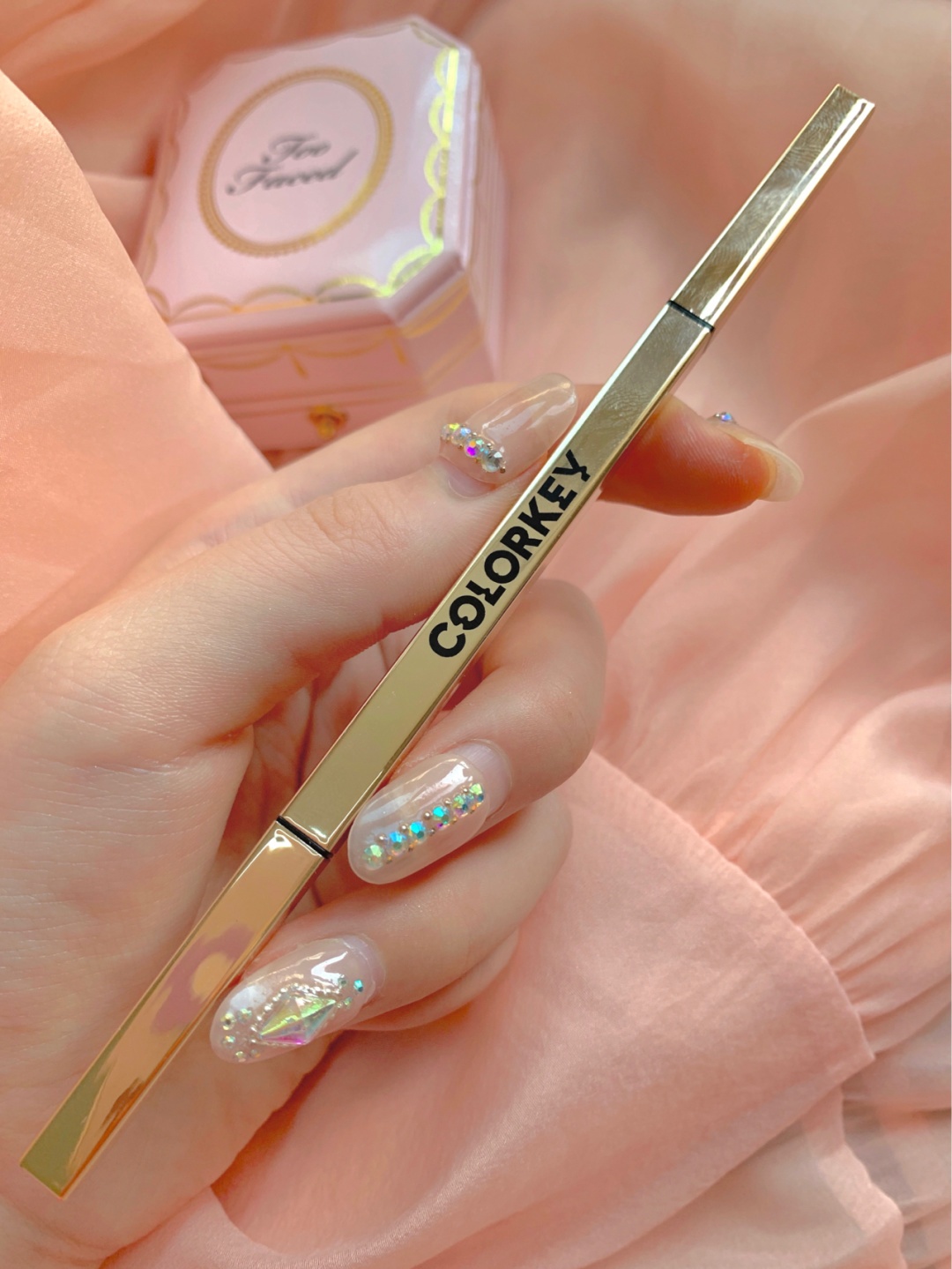 💗眉笔:colorkey小金筷眉笔!!这个外观真的吸引到我了😍好特别~好有质感~里面旋转出来是精巧的小三角笔芯 可以画出根根分明的野生眉 质地非常顺滑不会结块