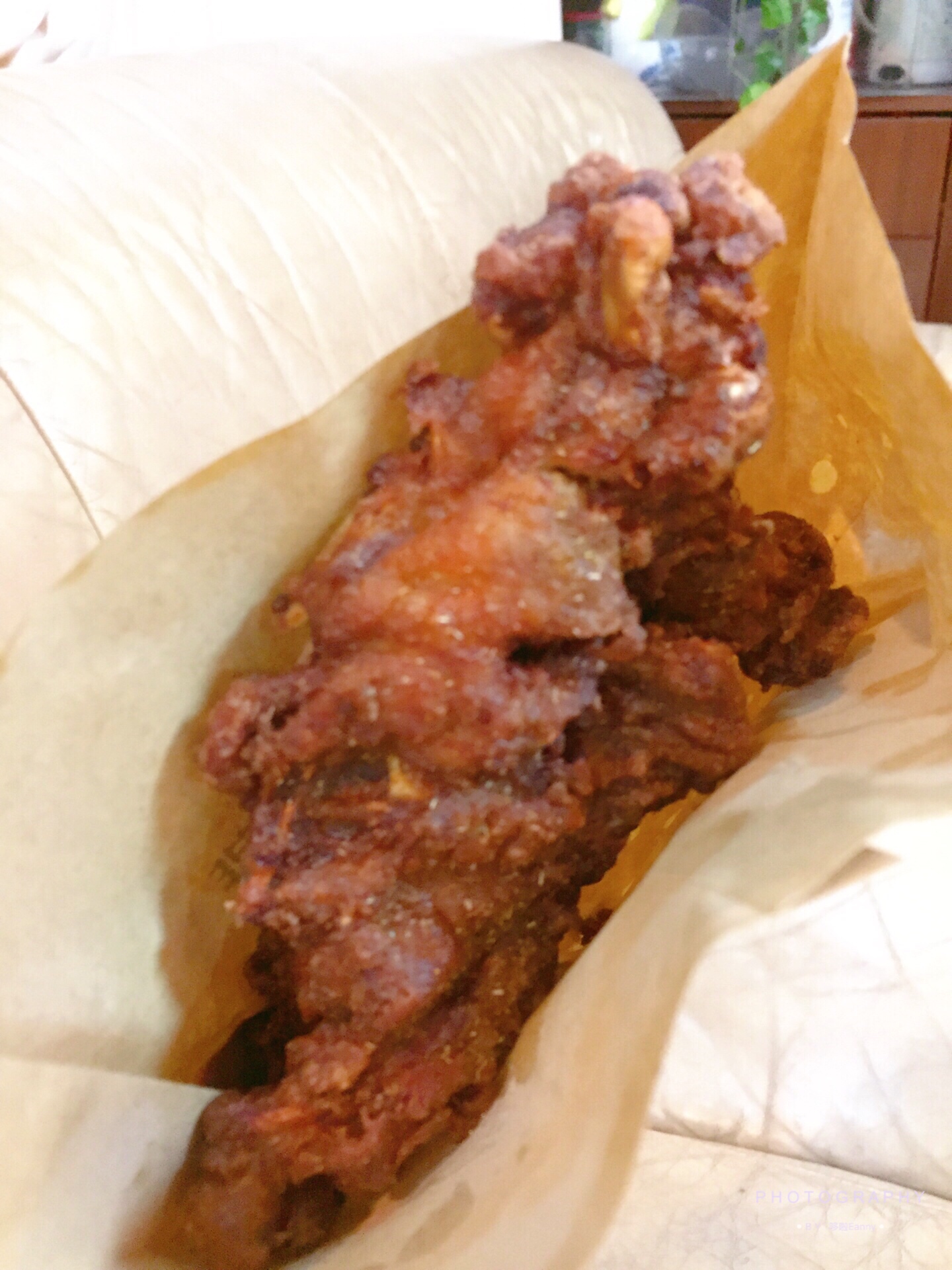份量十足很大块,吃起来香脆可口,味道真心不错,应该是腌制过的,很入味,就是感觉会有点上火,记得喝点凉茶。