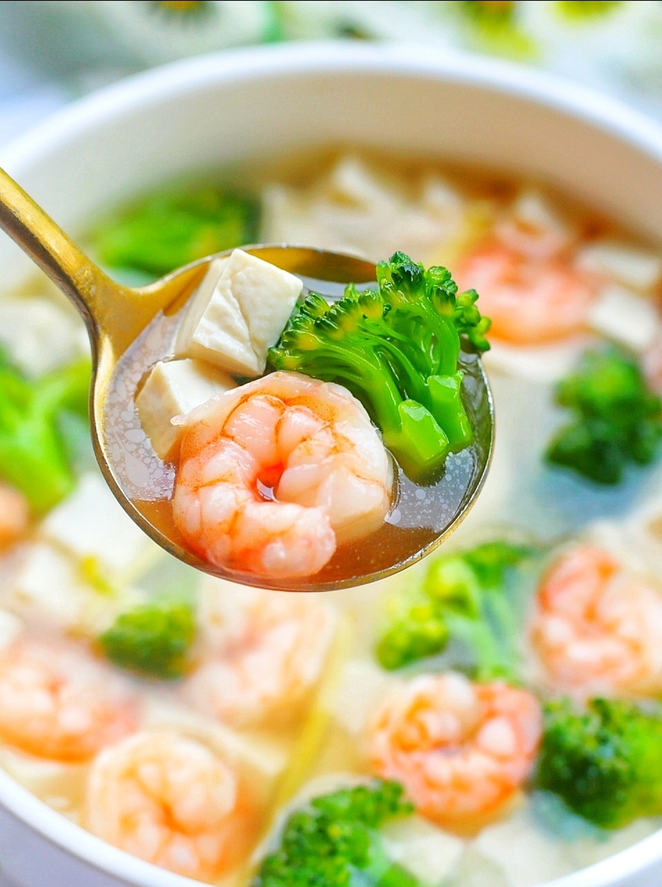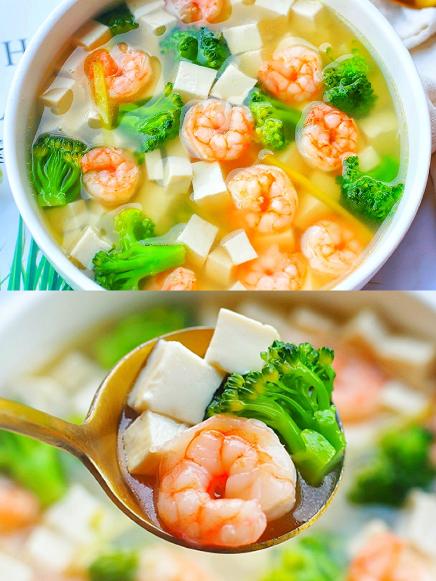 ㊙️低脂低卡减肥汤‼️好喝不胖的西兰花虾仁豆腐汤🔥