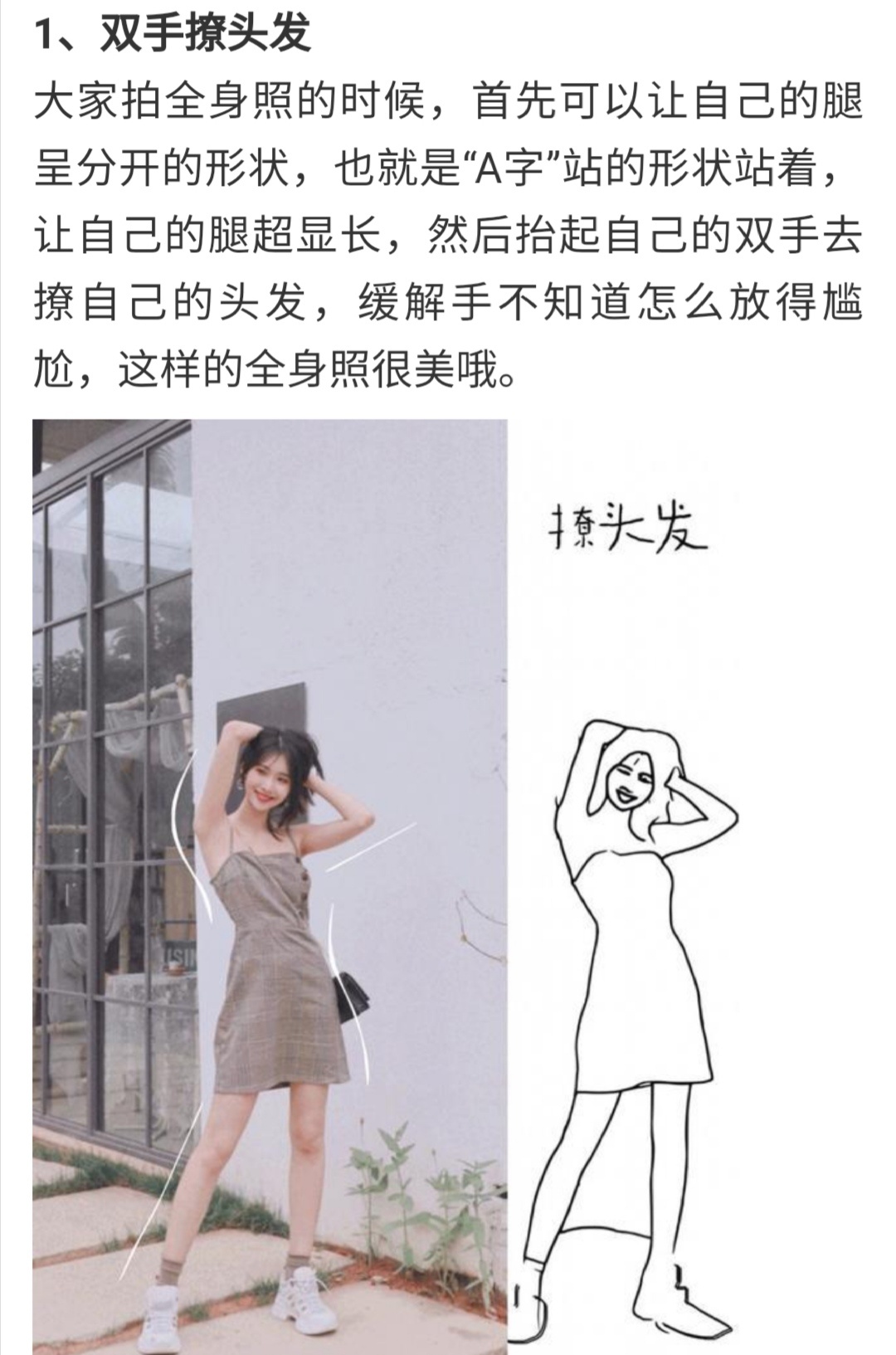 给仙女们说说一些全身照怎么摆的拍照姿势,怎么摆姿势才能上镜好看,分享7个全身照拍照姿势,让仙女在拍全身照的时候可以表情到位,四肢也协调,让全身照拍照美起来、好看起来,希望对仙女们的拍照有帮助,学起来!