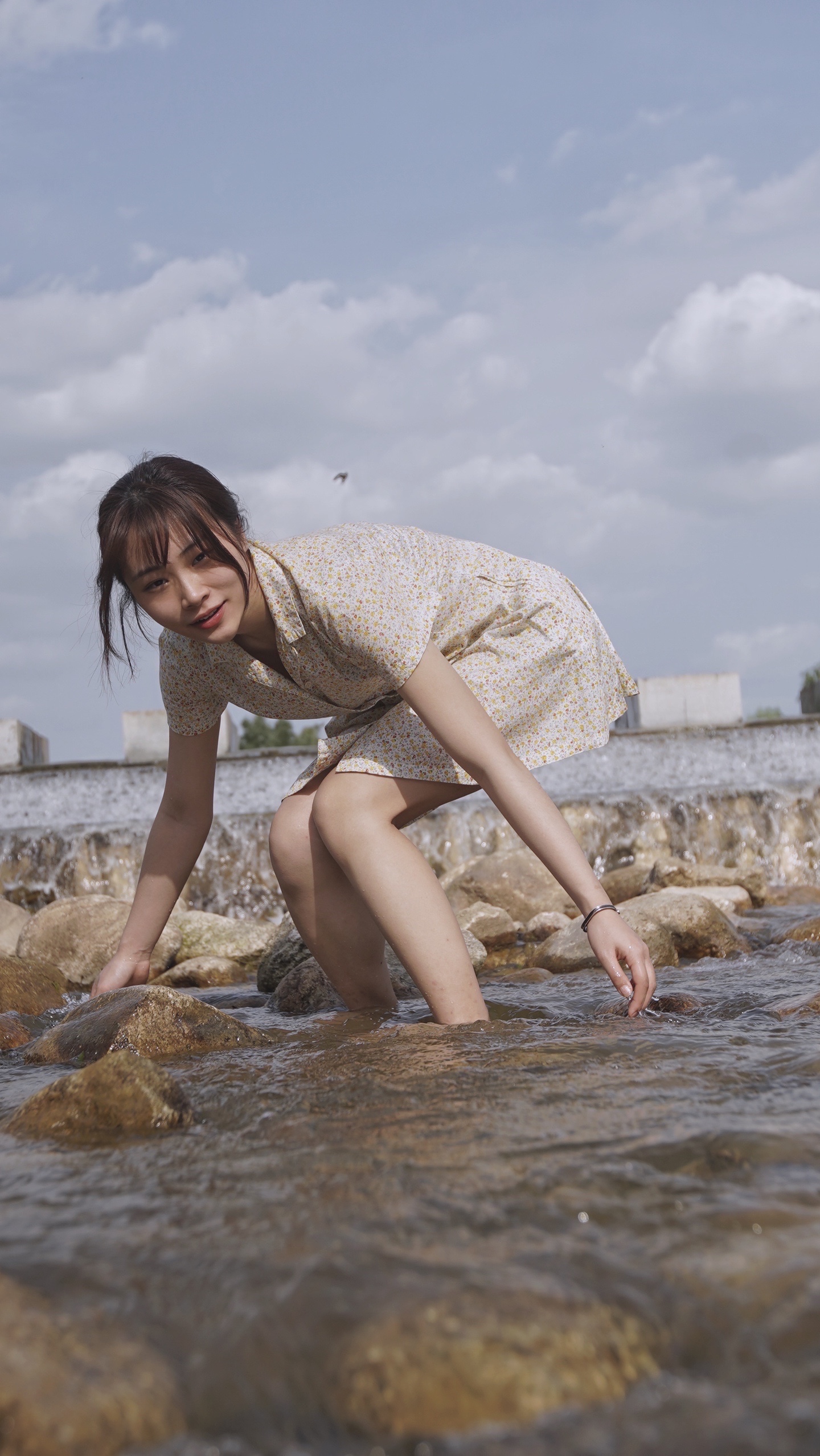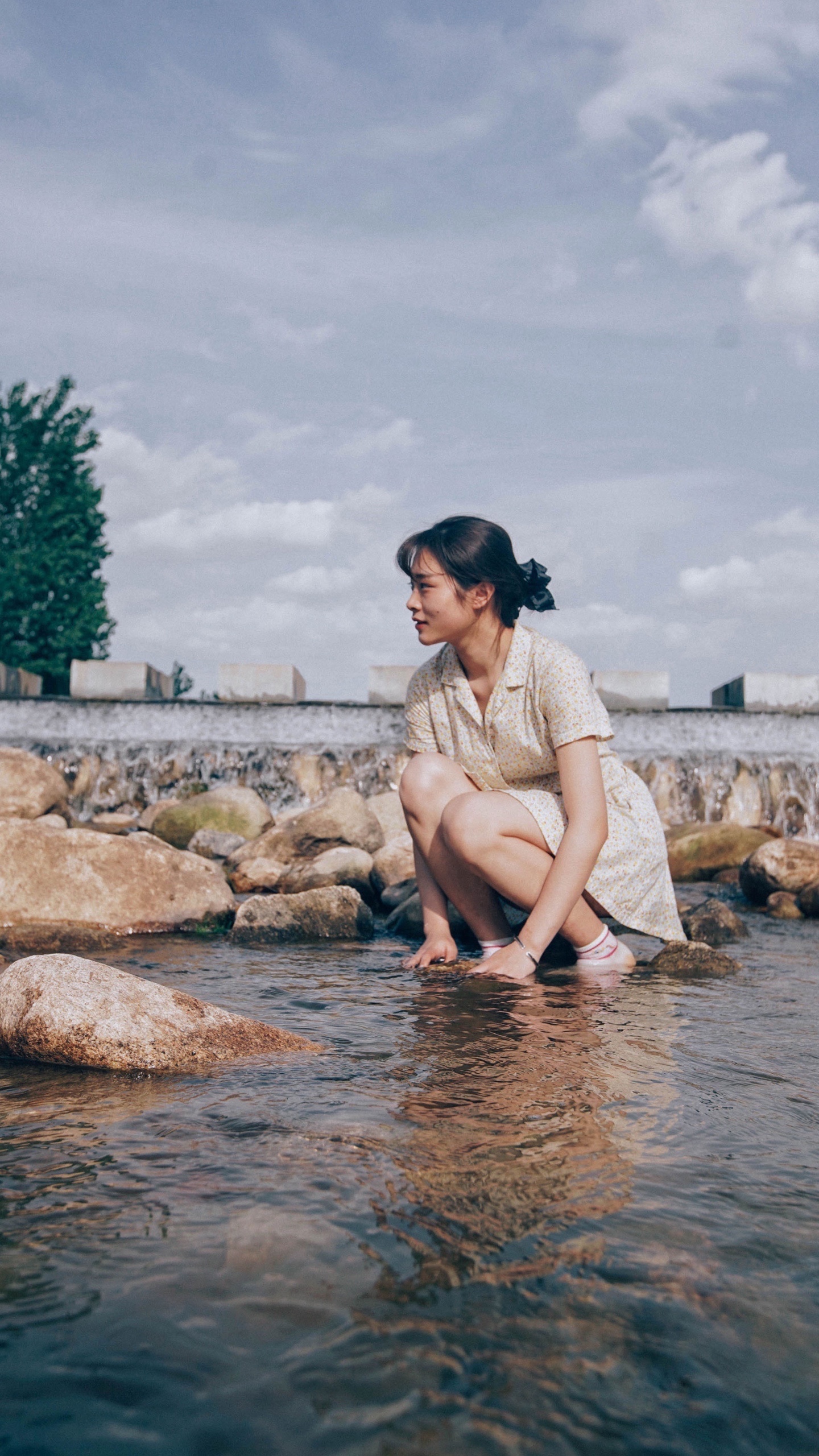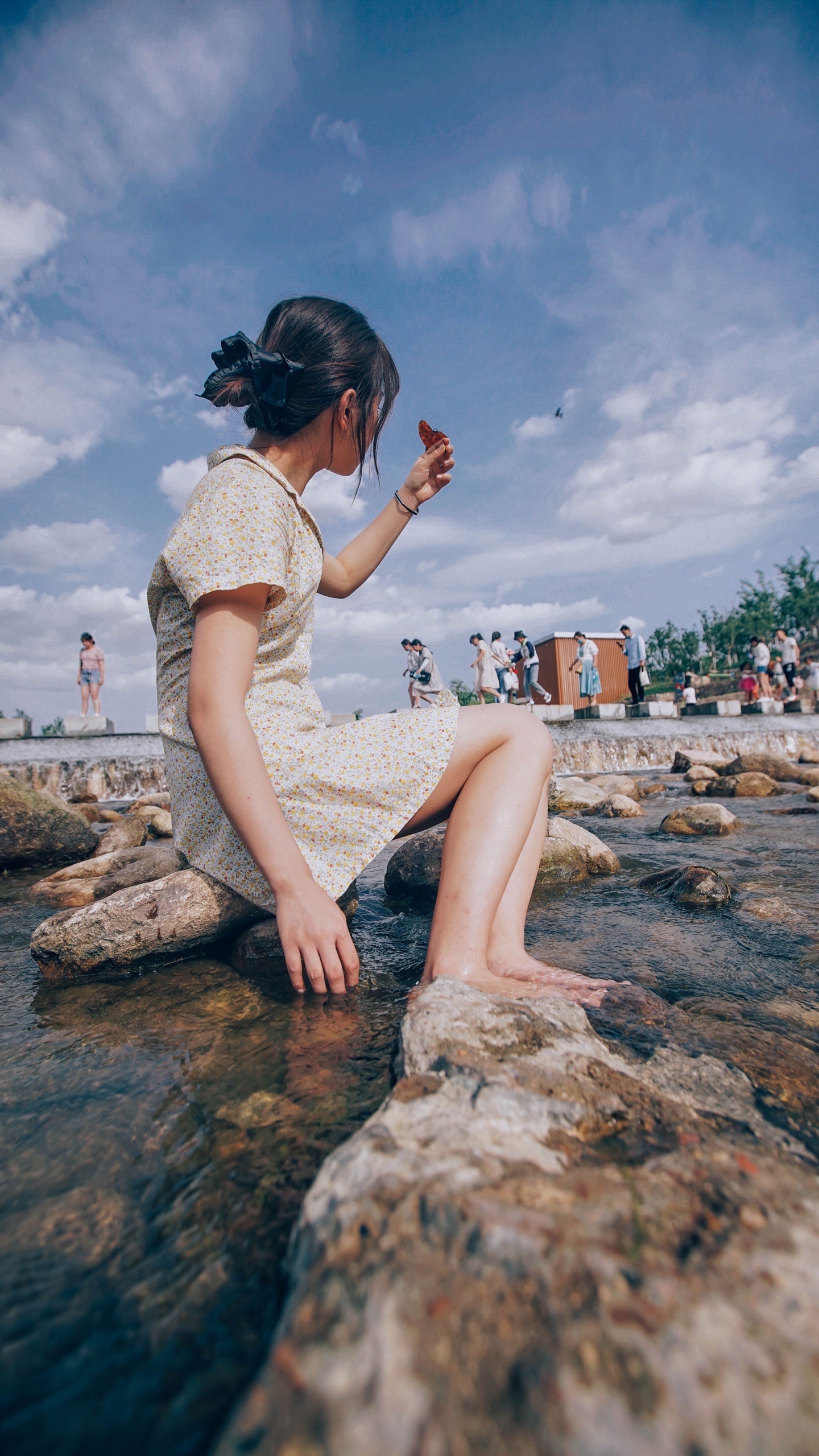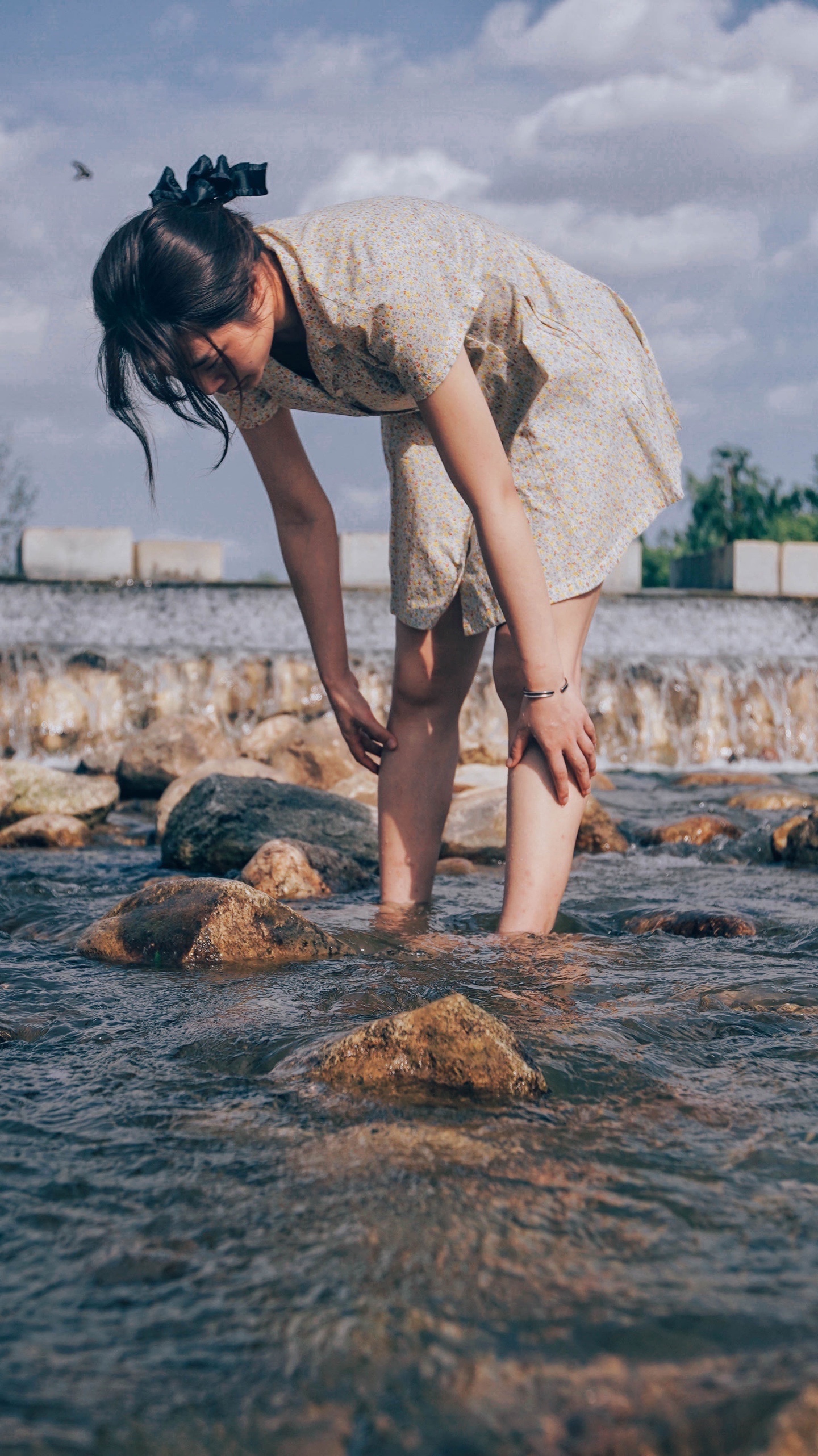 姐妹们去海边玩或者去溪边踩水,拍照总是比剪刀手吗?