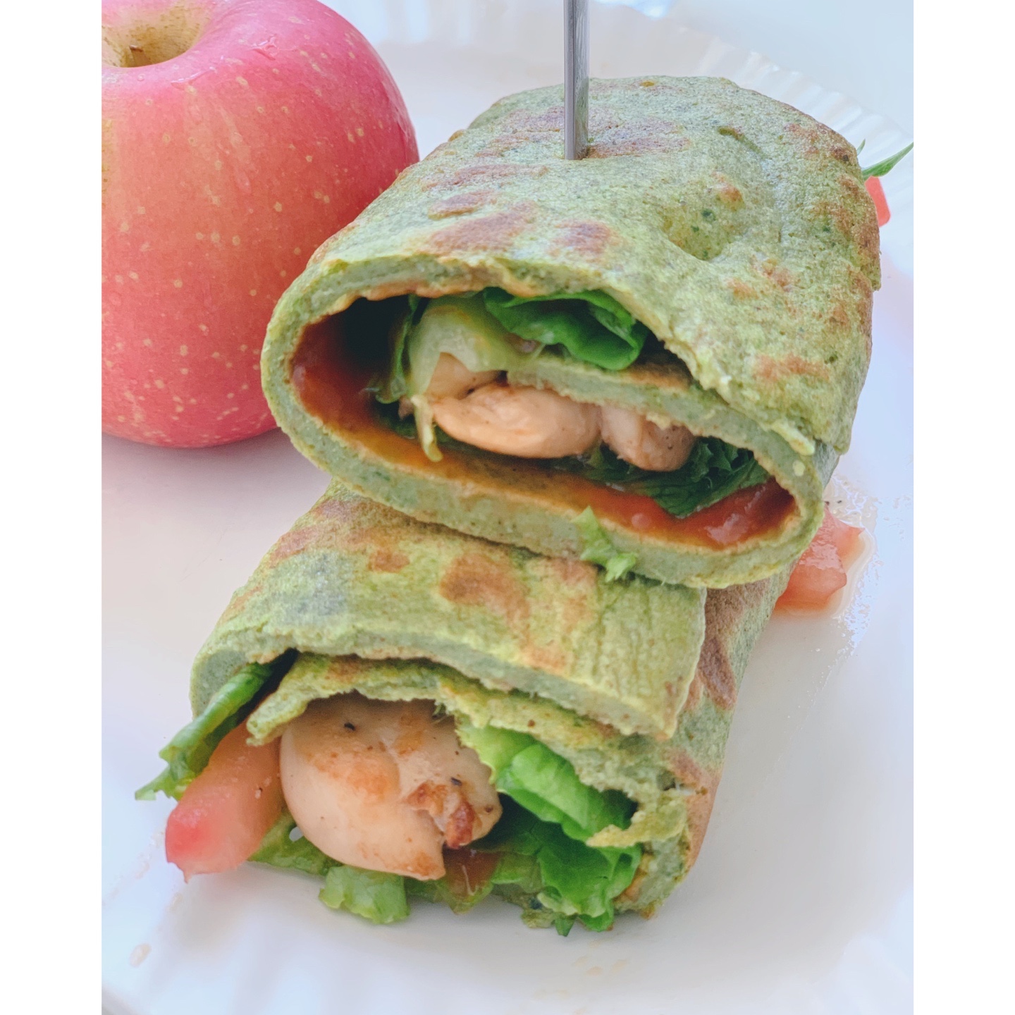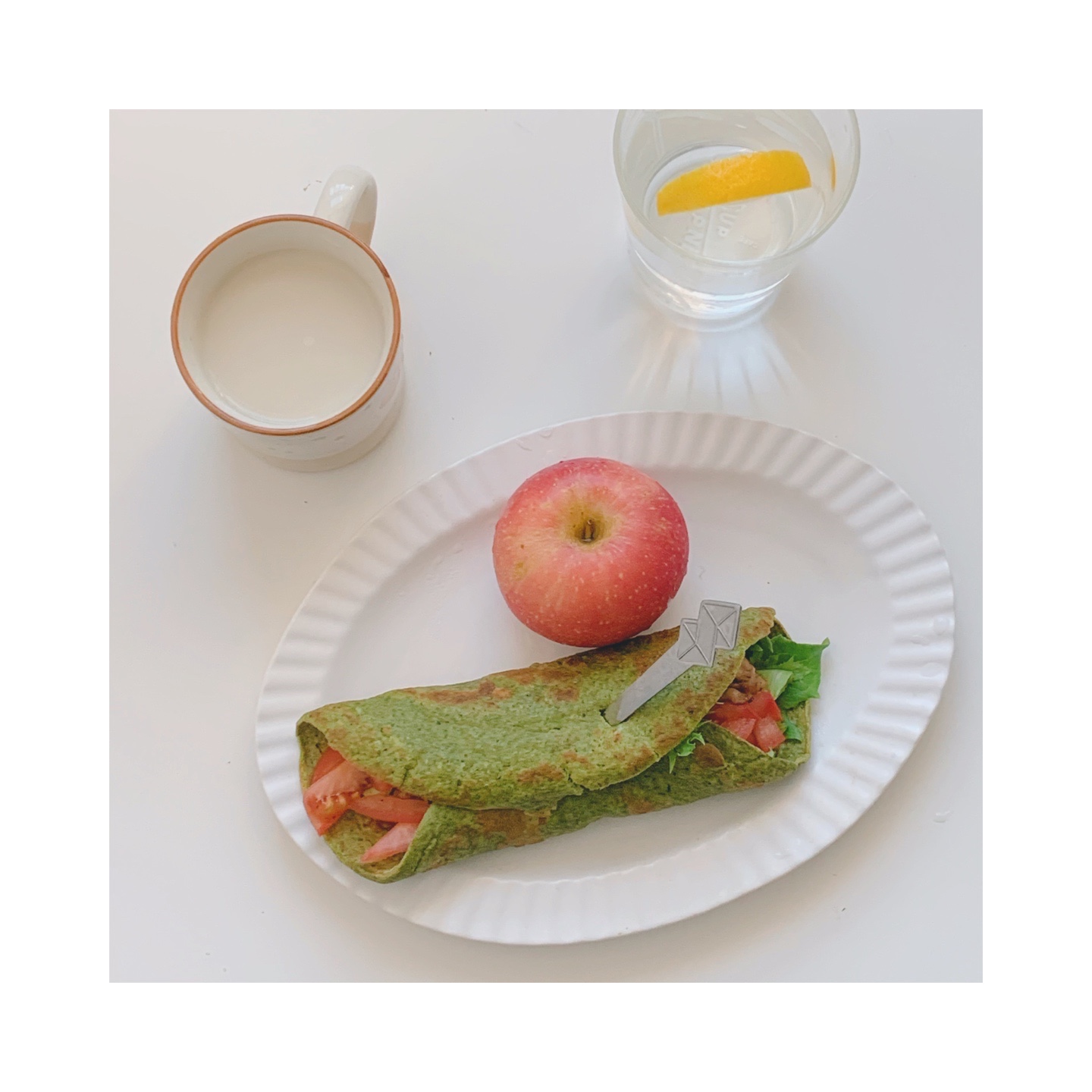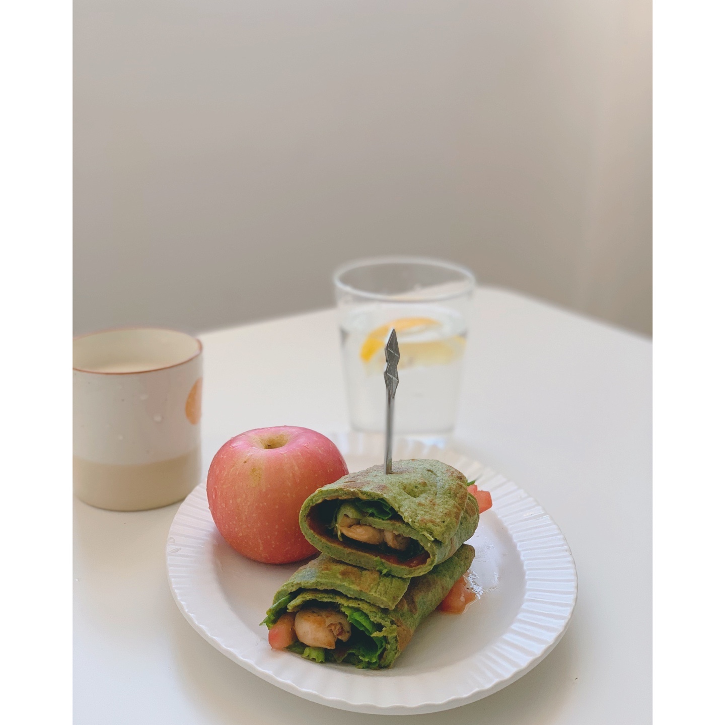 🥕今日餐:菠菜全麦鸡肉卷饼+燕麦奶+苹果