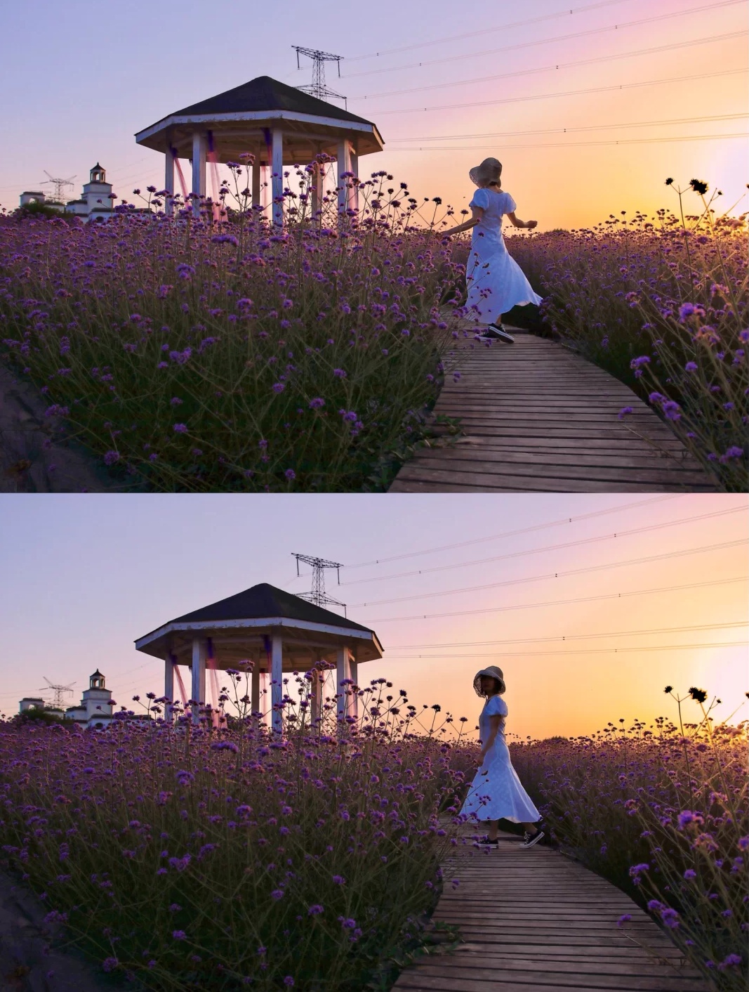 小贴士:尽量穿纯色衣服,建议穿裙子,颜色白色出片很赞,可以戴草帽太阳帽,可以避免拍照眼睛睁不开,编织包或篮子和帽子很搭哦,注意防晒和驱蚊哦