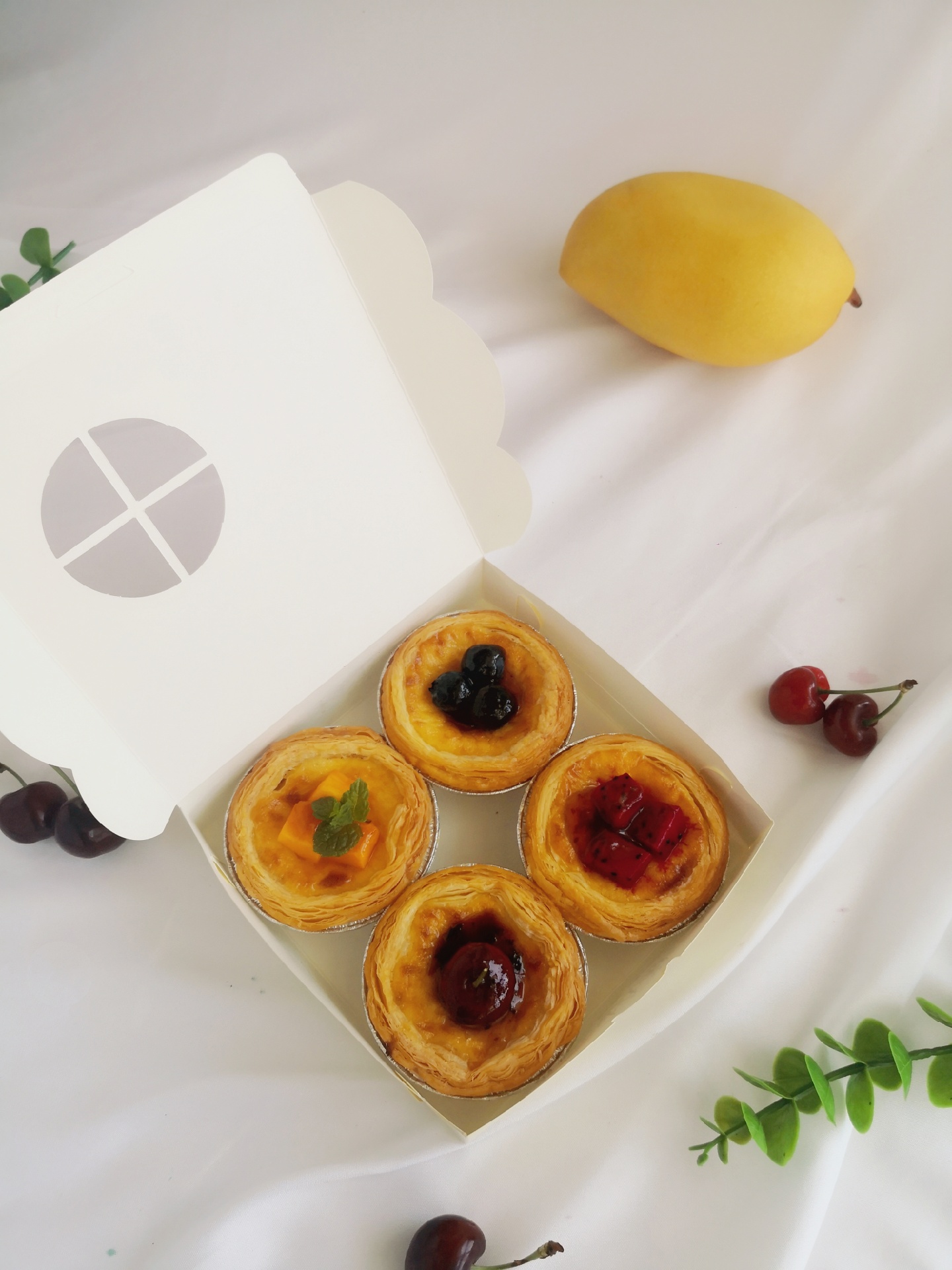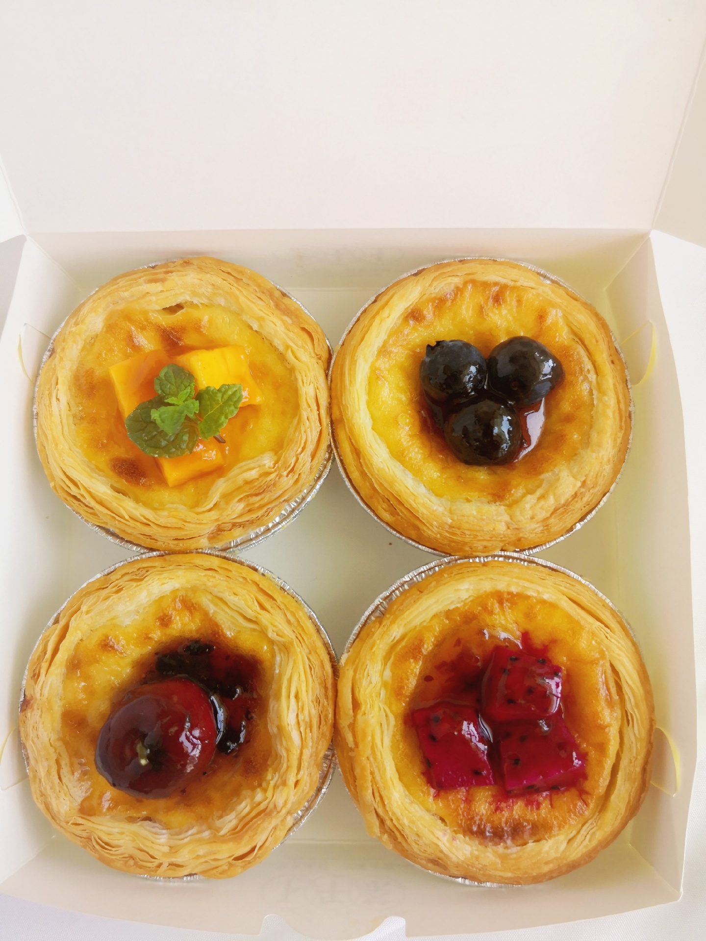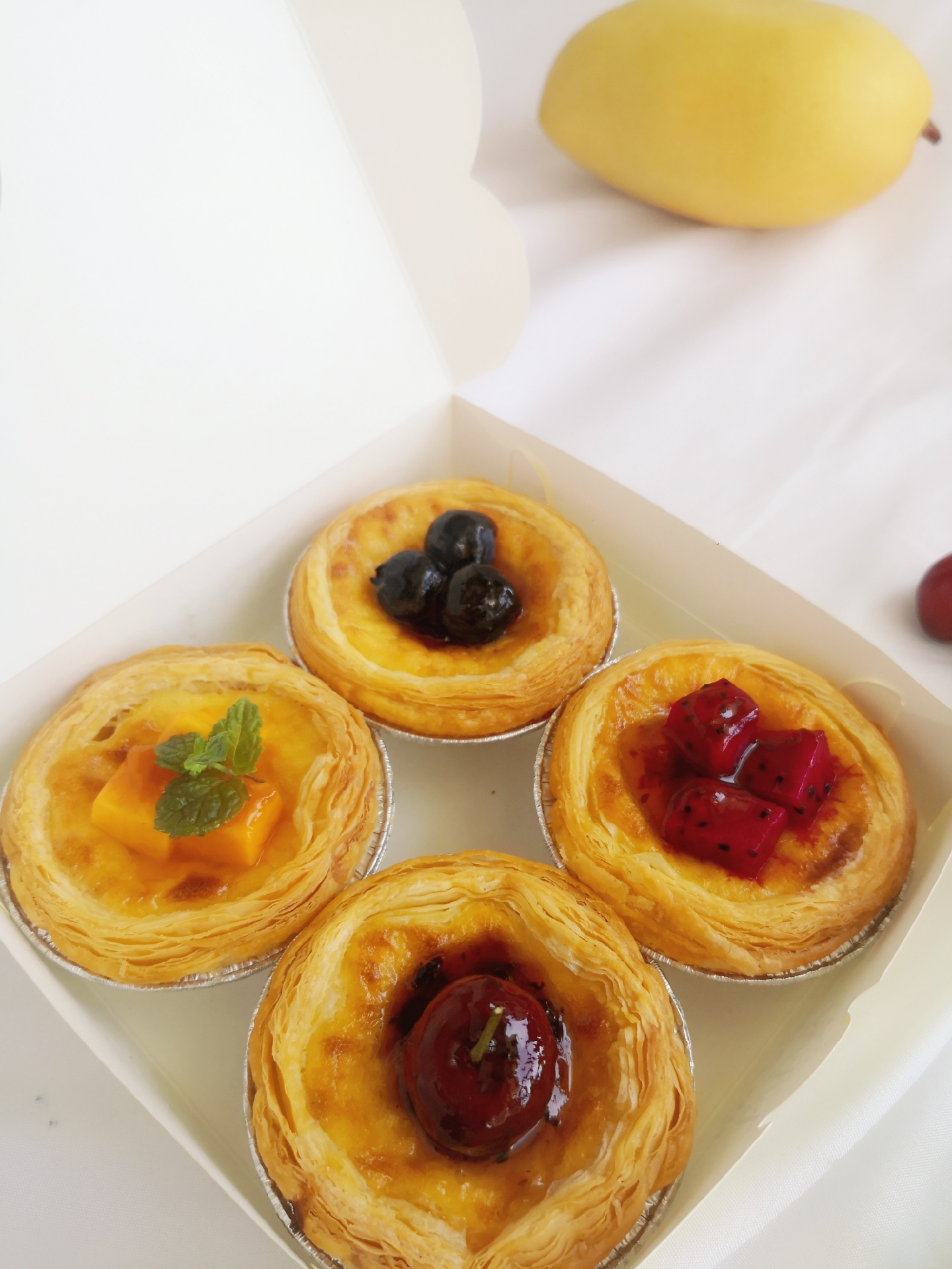 在传统的葡式蛋挞的基础上,加了四种水果,芒果🥭、蓝莓、红心-美图社区-美图秀秀