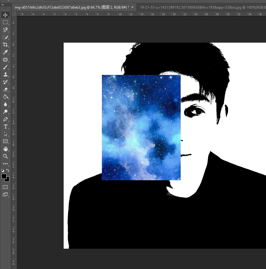 ⑥将星空图拖进ps如p7(千万记得ctrl+t将星空图拖的和照片一样大哦🎉)