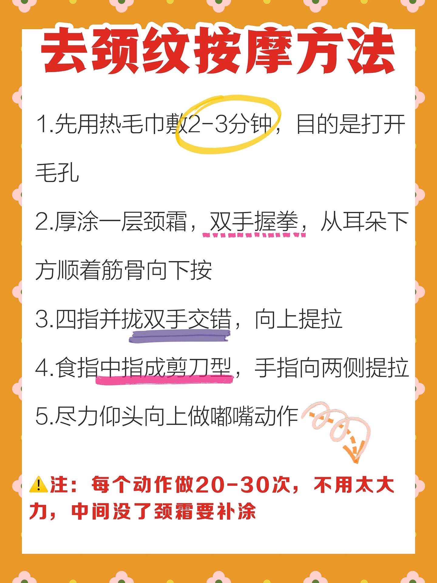 🩸注:每个动作做20-30次,不用太大力,中间没了颈霜要补涂