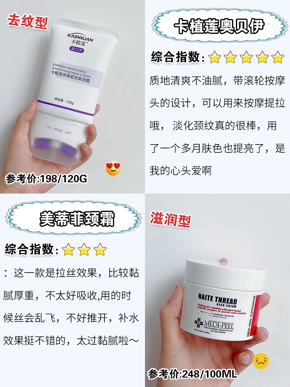 🌸今天整理了8️⃣款热门颈霜挑选攻略 ,快来挑选一款适合你的去颈纹霜,😘不要偷懒哦!