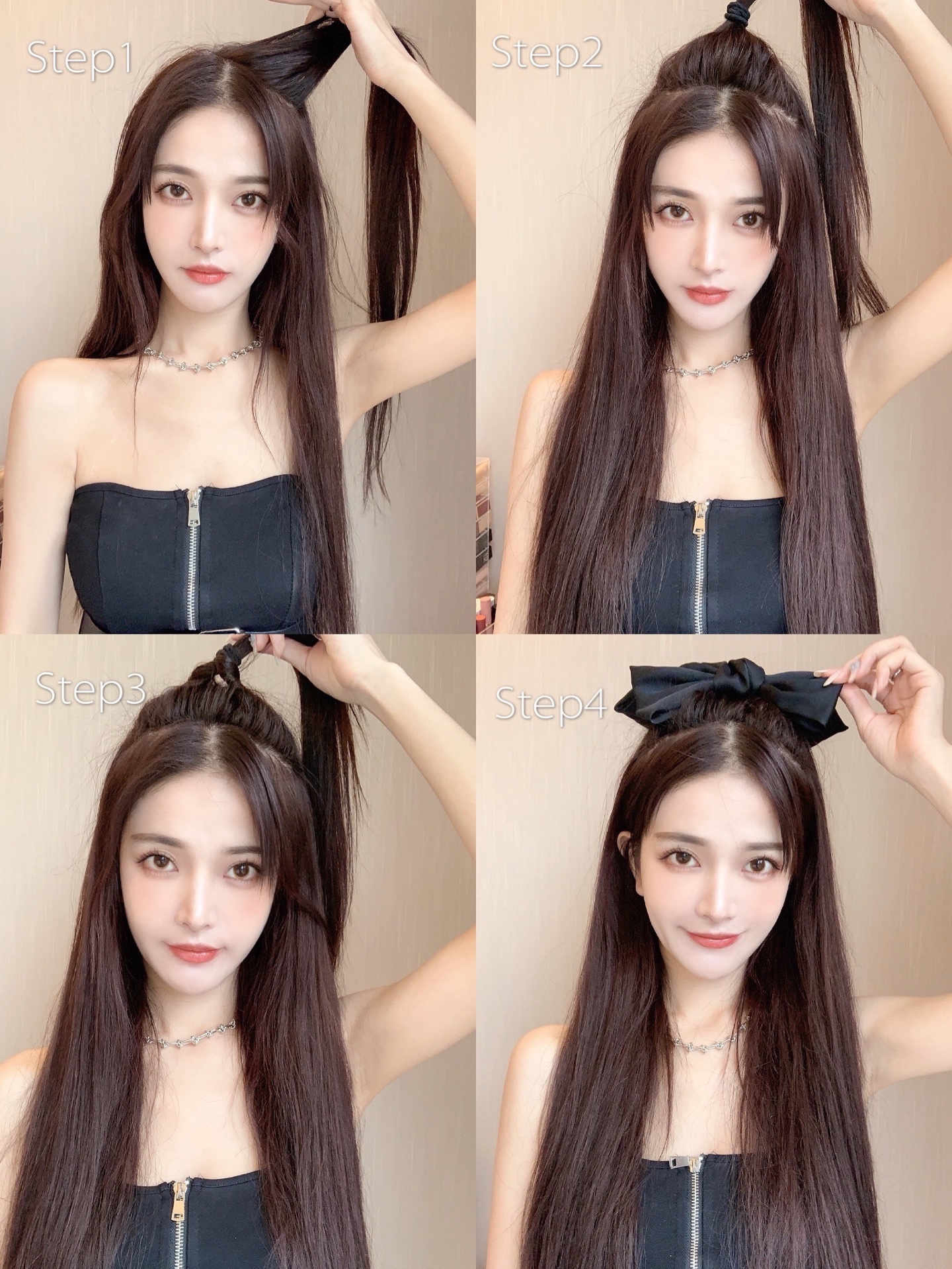 step2⃣️然后扎成高马尾