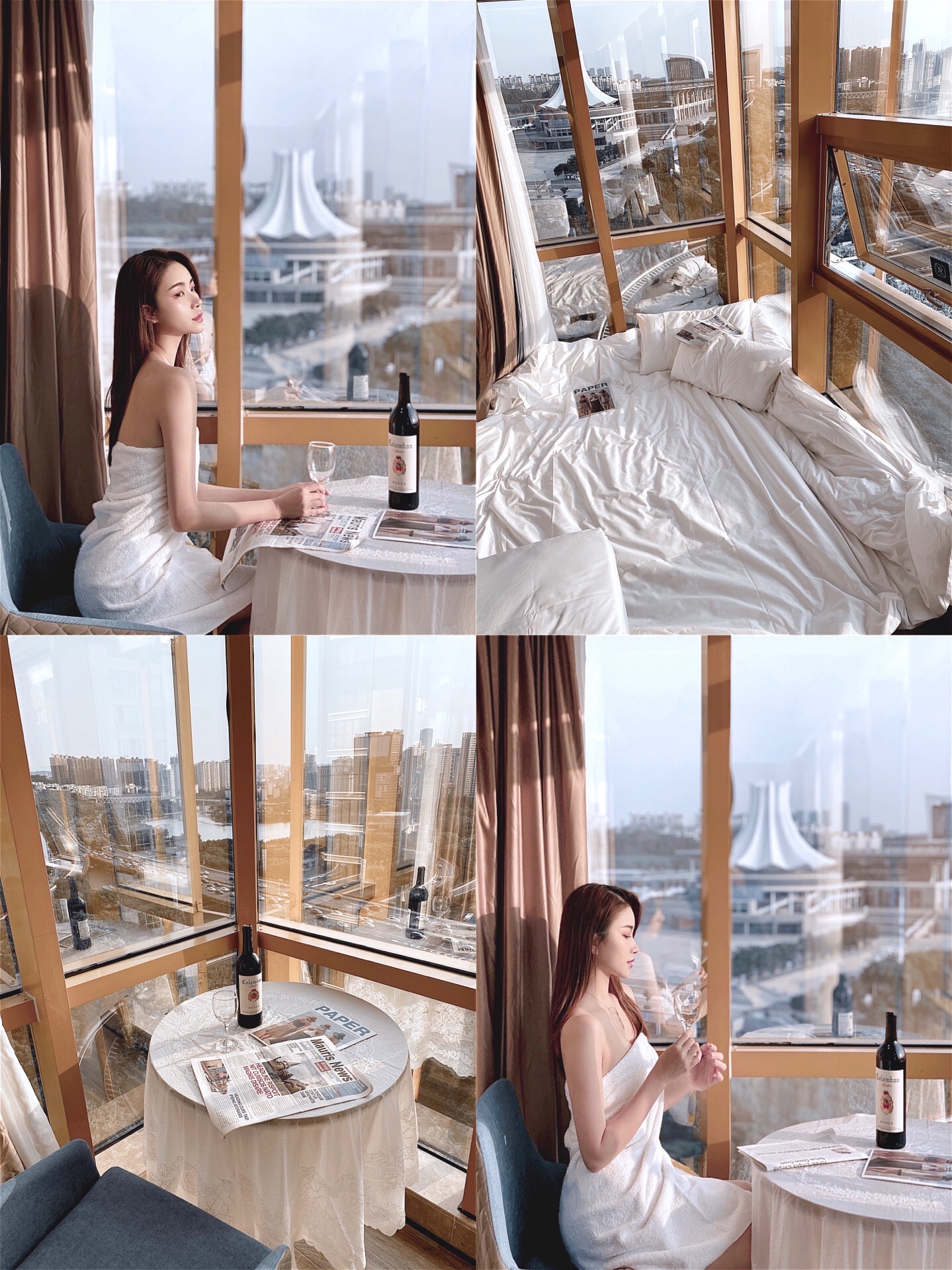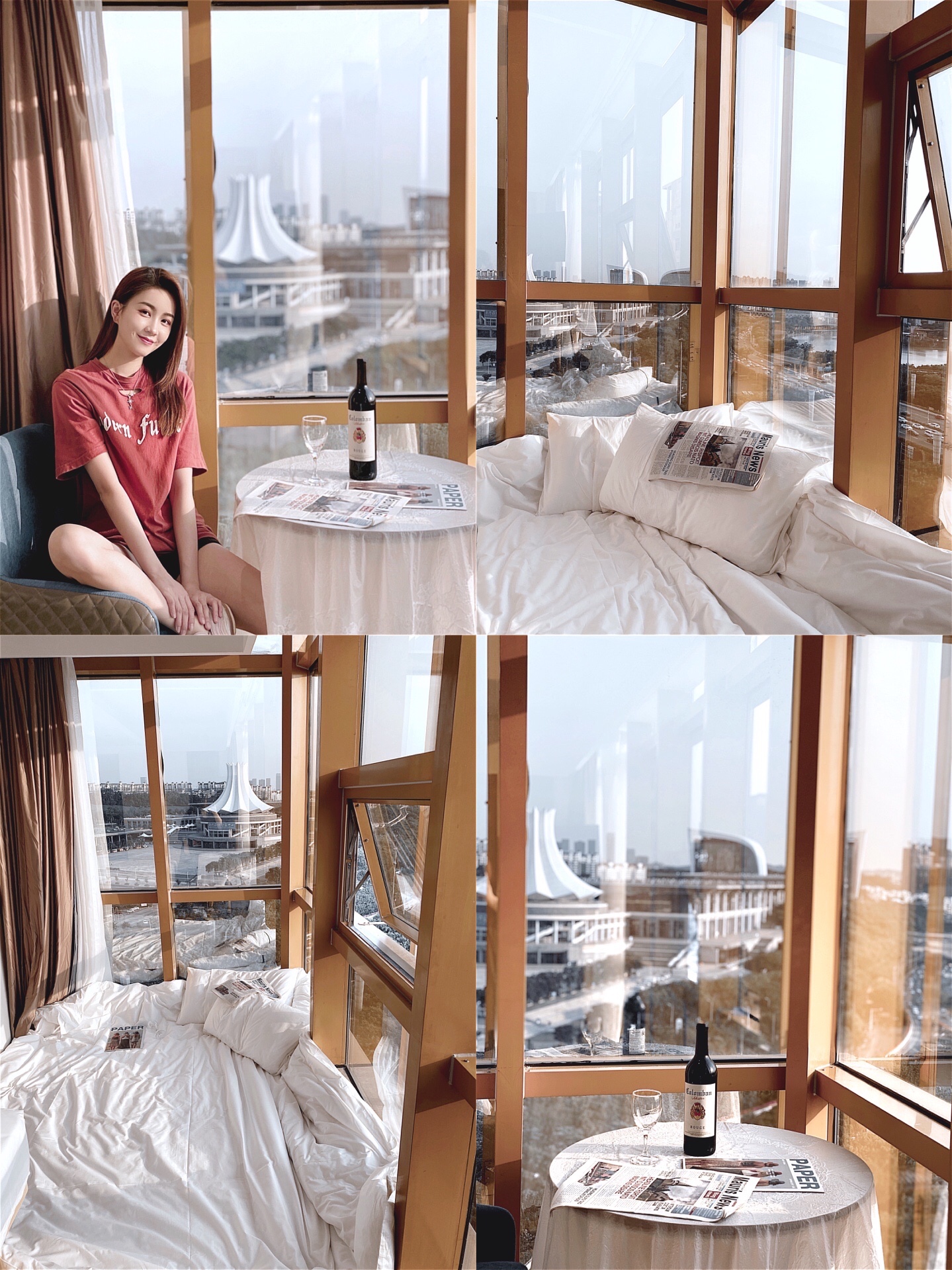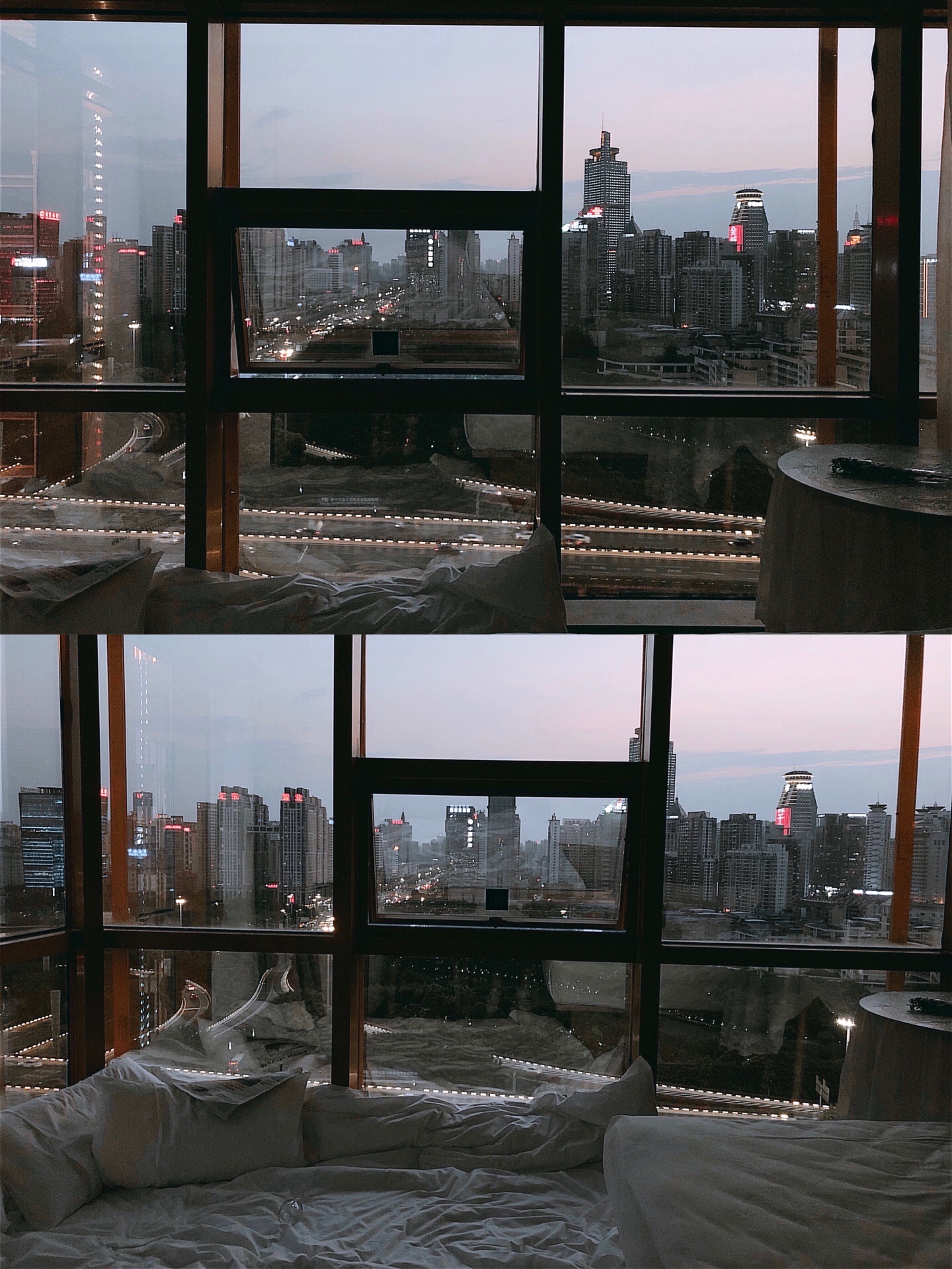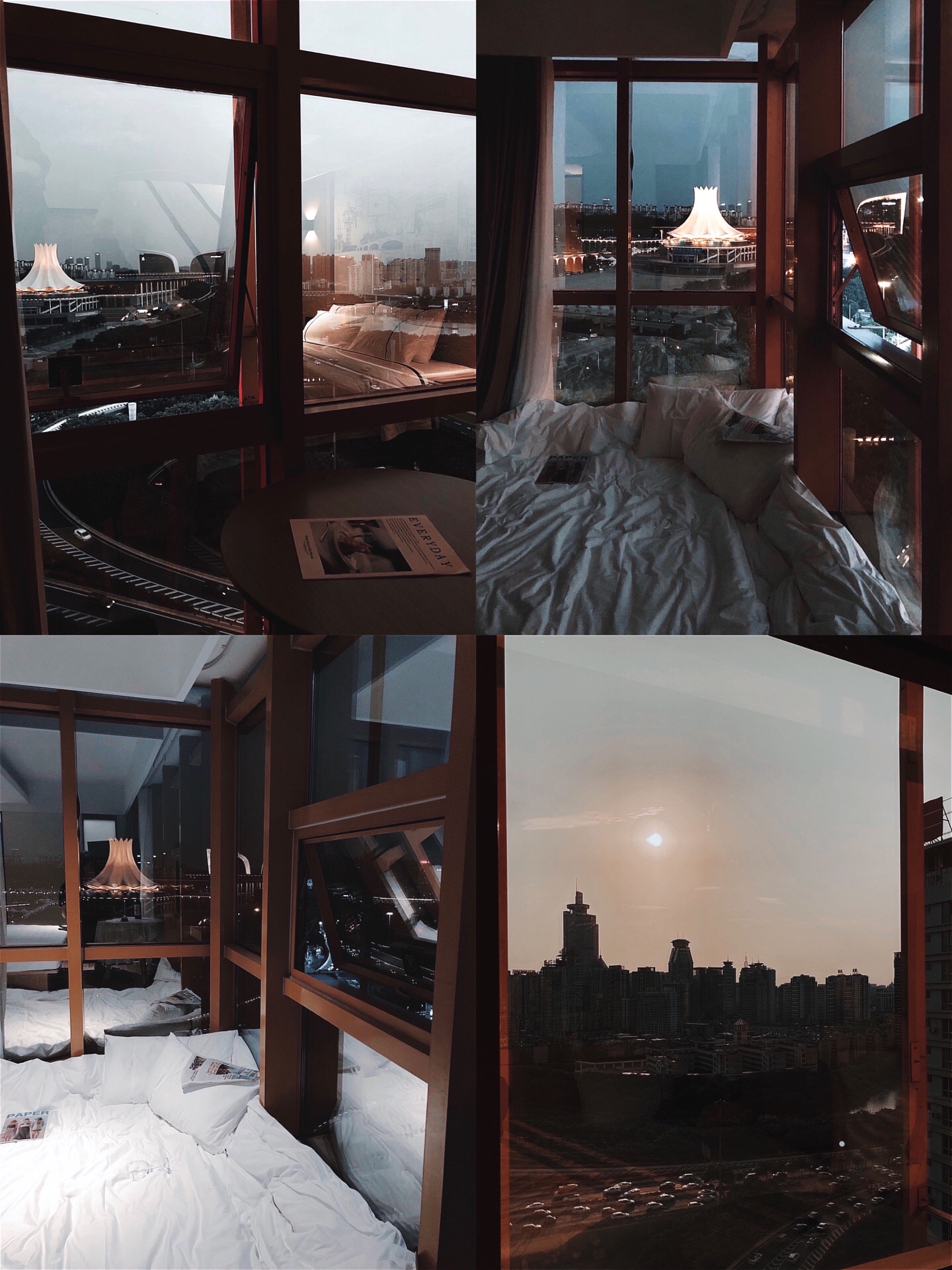 白天阳光透过窗户照进来 光线超好 以窗外的蓝天和街景作背景 随便拍都很出片 傍晚可以欣赏夕阳缓缓落下 晚上躺在床上看城市的灯光渐渐亮起 看窗外车水马龙川流不息 简直太舒服了吧!