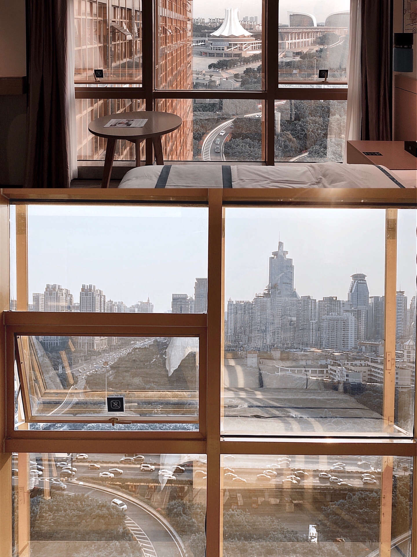 这个酒店真的太好拍照了吧 270度俯瞰南宁城市街景 视野满分! 南宁会展中心的朱槿花地标 还有地王大厦 以及青秀区的高楼群 全都可以无遮挡的看到和拍到