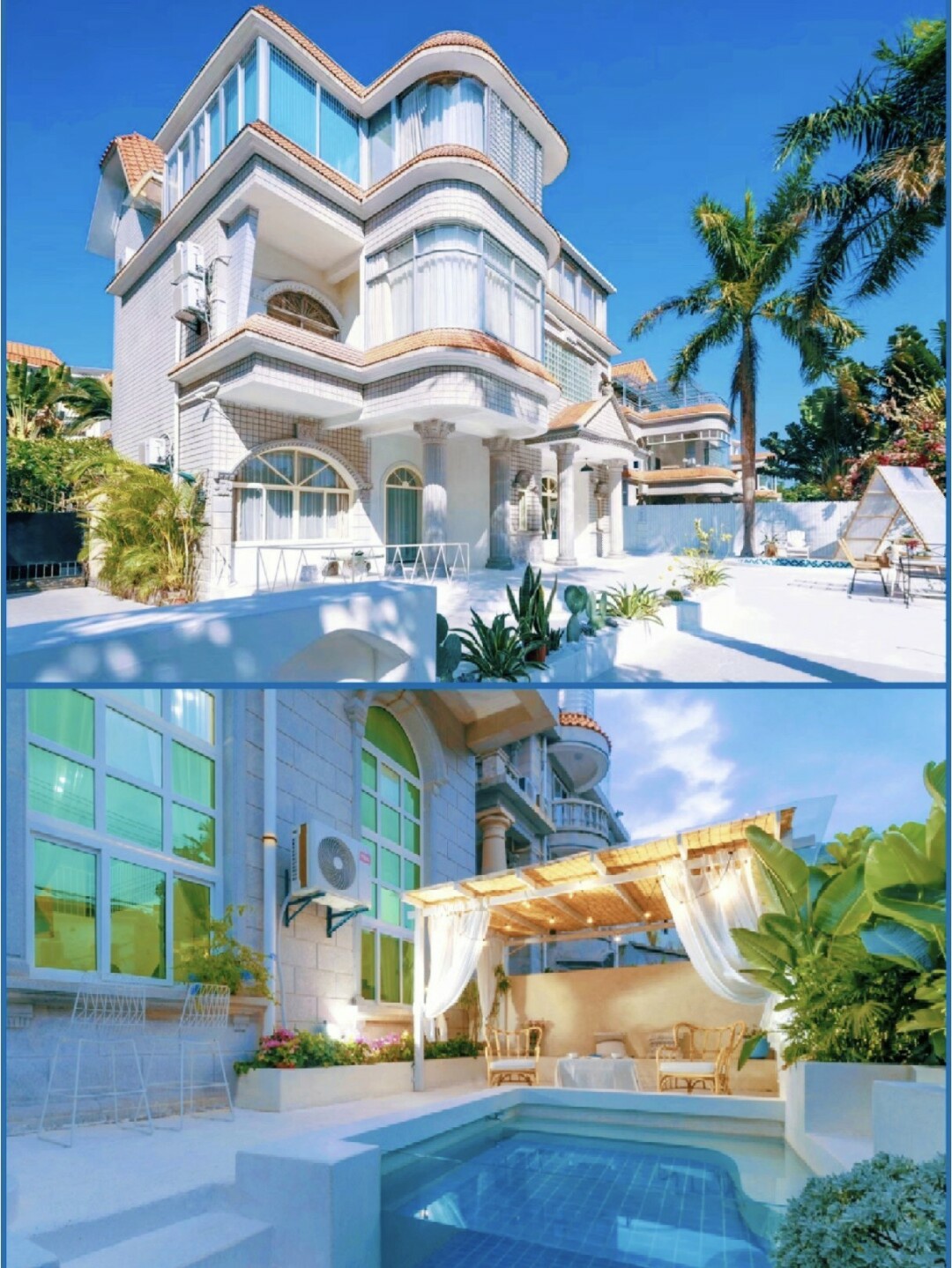 蓝色城堡✨露天花园✨无边泳池抬头就能看见星星
