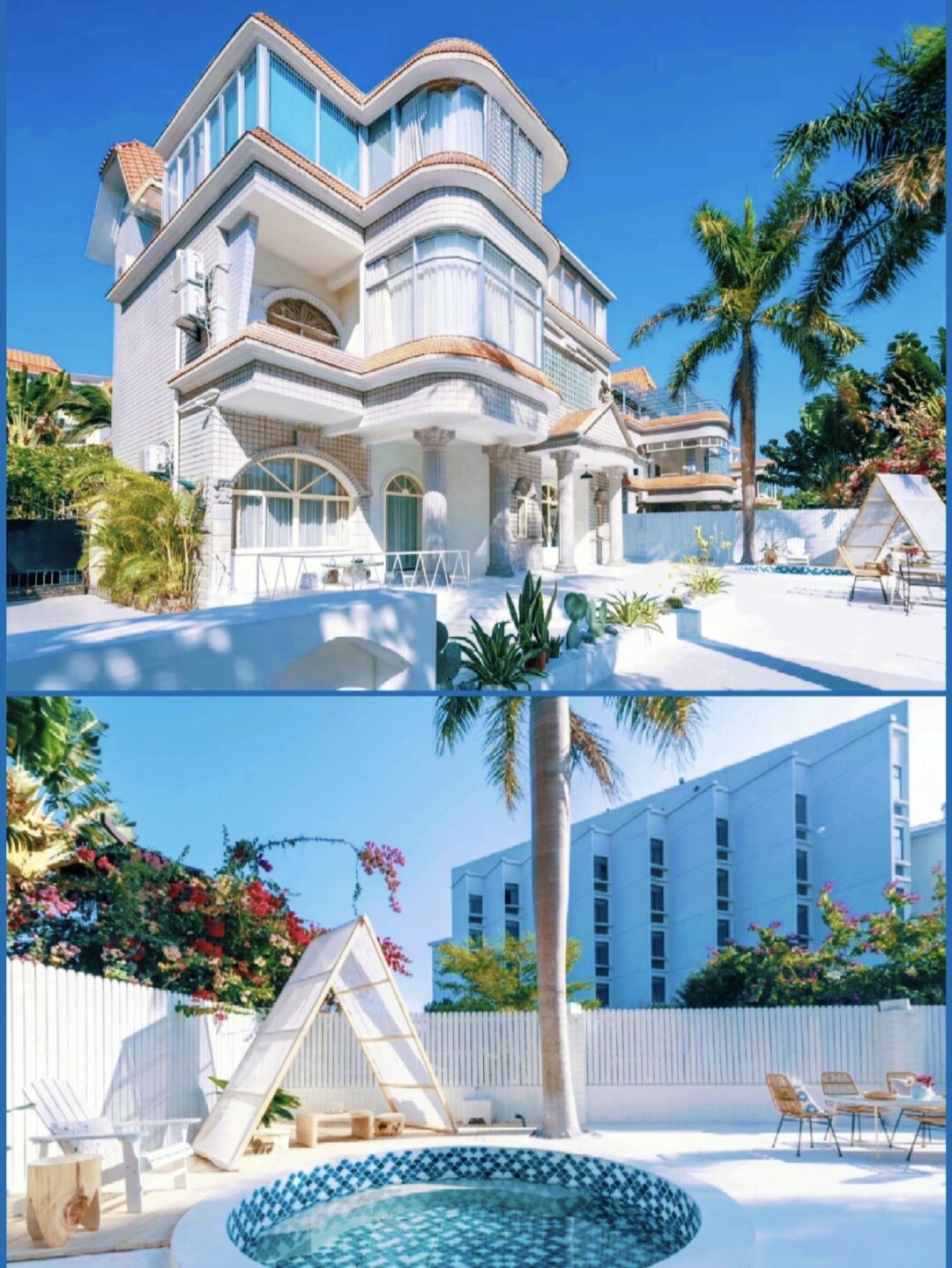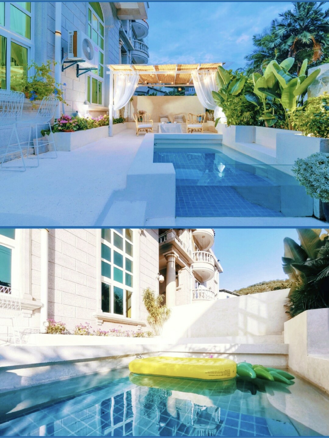 超大方形泳池,随处可见的热带植物🌵仙人掌真的是绝佳的拍照背景!躺在吊椅上抬头就能看见星星❗怎么拍都好看!