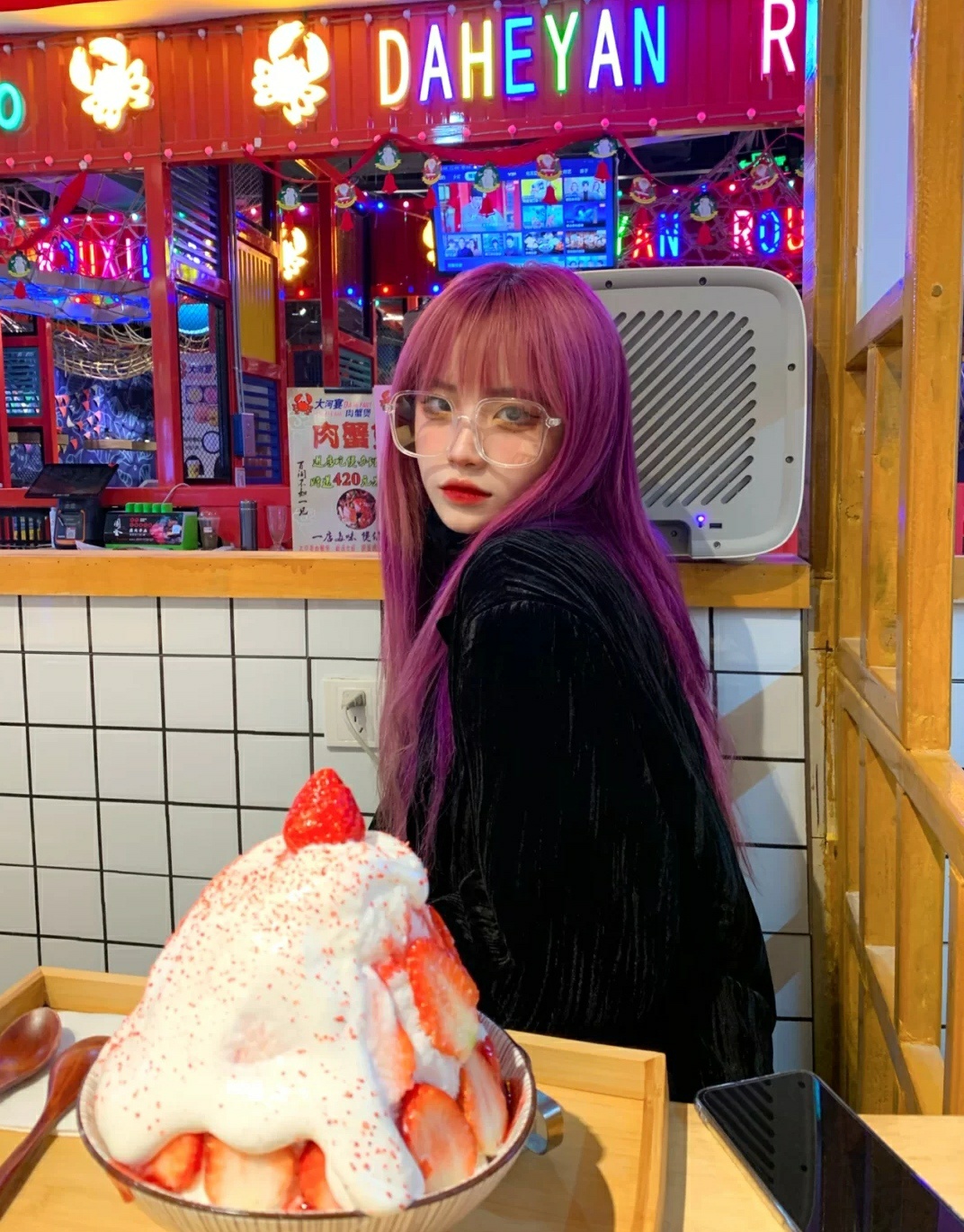 💜葡萄紫🍇掉色后带点粉,因为之前染的是渐变,所以掉了色后更明显,同时拥有两个发色😏