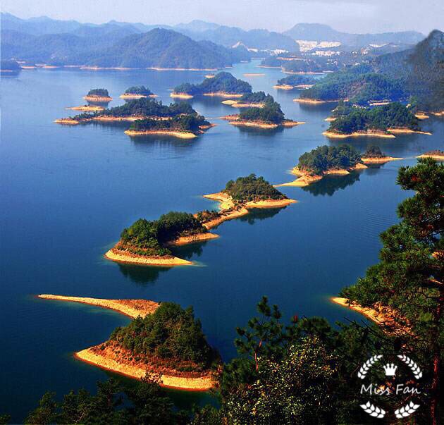 千岛湖风景区位于浙江省杭州市淳安县境内,是国家名胜岛屿最多、面积最大,岛屿形态各异,共拥有岛屿1078个,千岛湖湖形为树枝型,绿化森林覆盖率百分之百。站在山上望京台望去,美的,就是一个不要不要的喔🌈🌝🏃👍✌👌