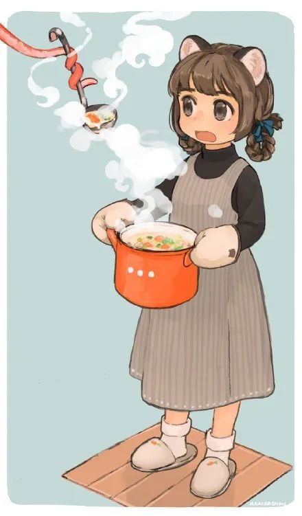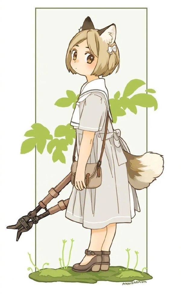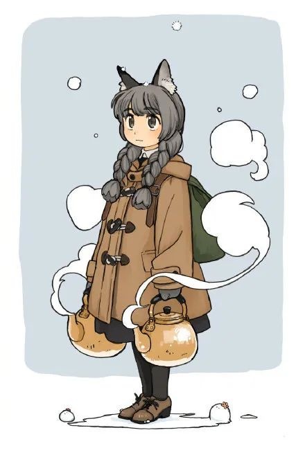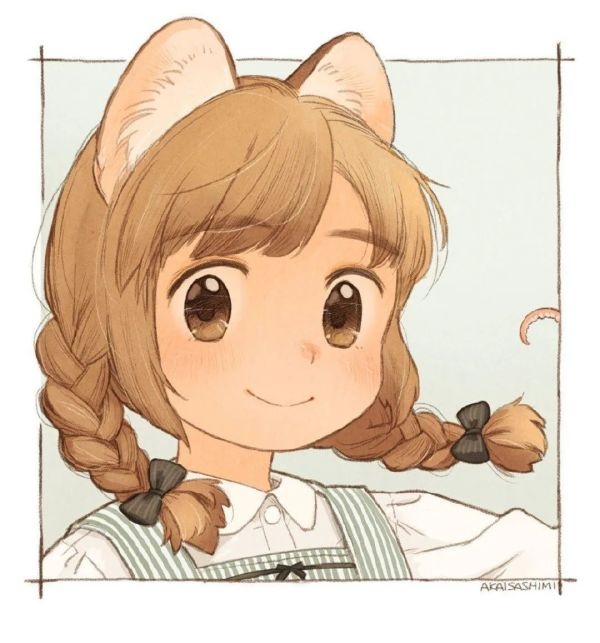他的画风童趣又可爱十足,柔和的色彩让他作品中的兽耳娘显得恬静温柔,画中兽耳娘的那种姿态,仿佛带来了元气满满的新的一天。