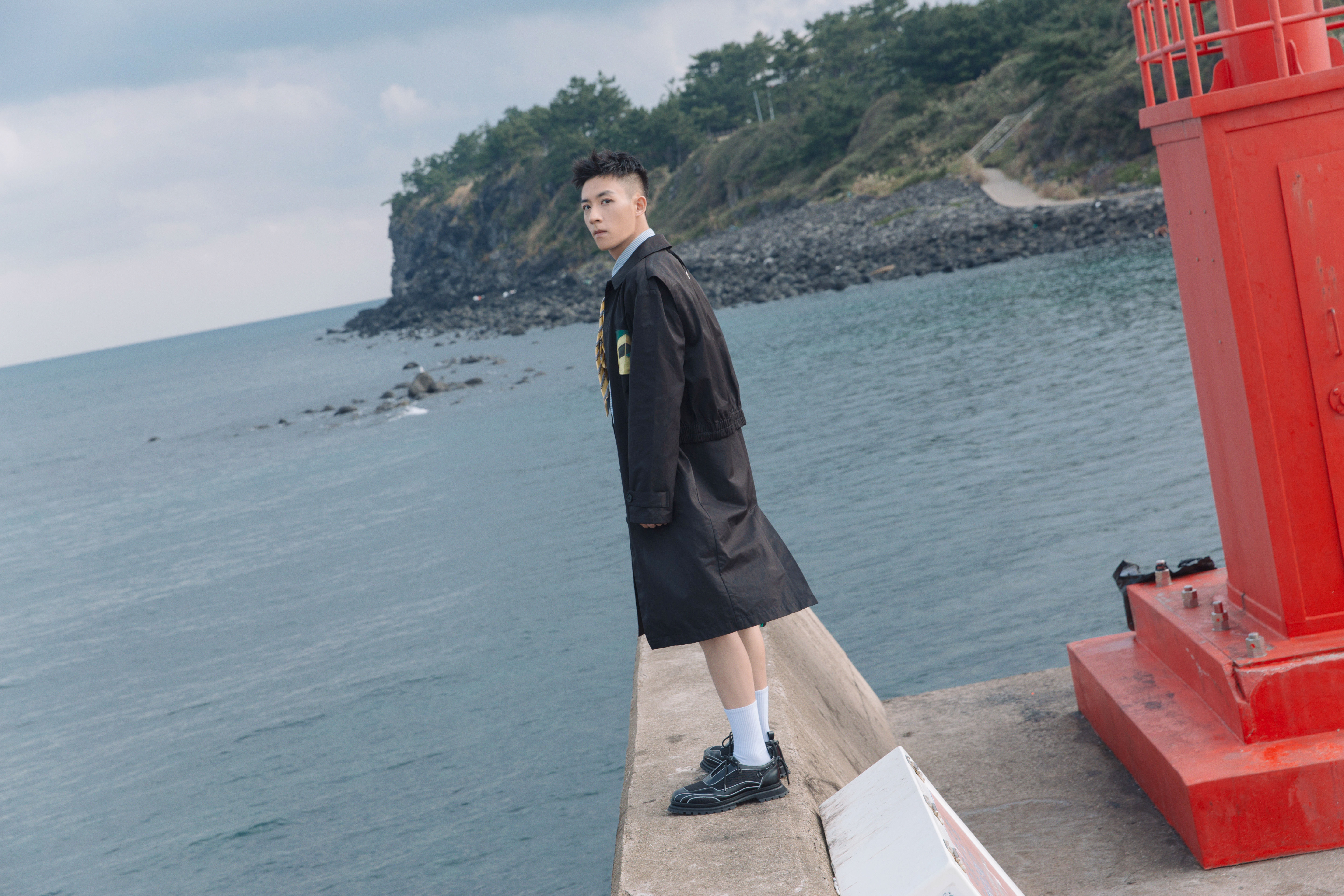 济州岛延绵几十里的海岸线,绿树和徒步小路环绕的山间,谷嘉诚化身浪漫韩剧中的男主角,在镜头的捕捉下将各种拍摄风格完美演绎,展现每一个心动瞬间。在公开的几组写真图中,谷嘉诚穿搭极具个人风格,不论是复古风格十足的黑色风衣,还是街头风的连体休闲装,都尽显谷嘉诚酷帅有型的潮男时尚感。