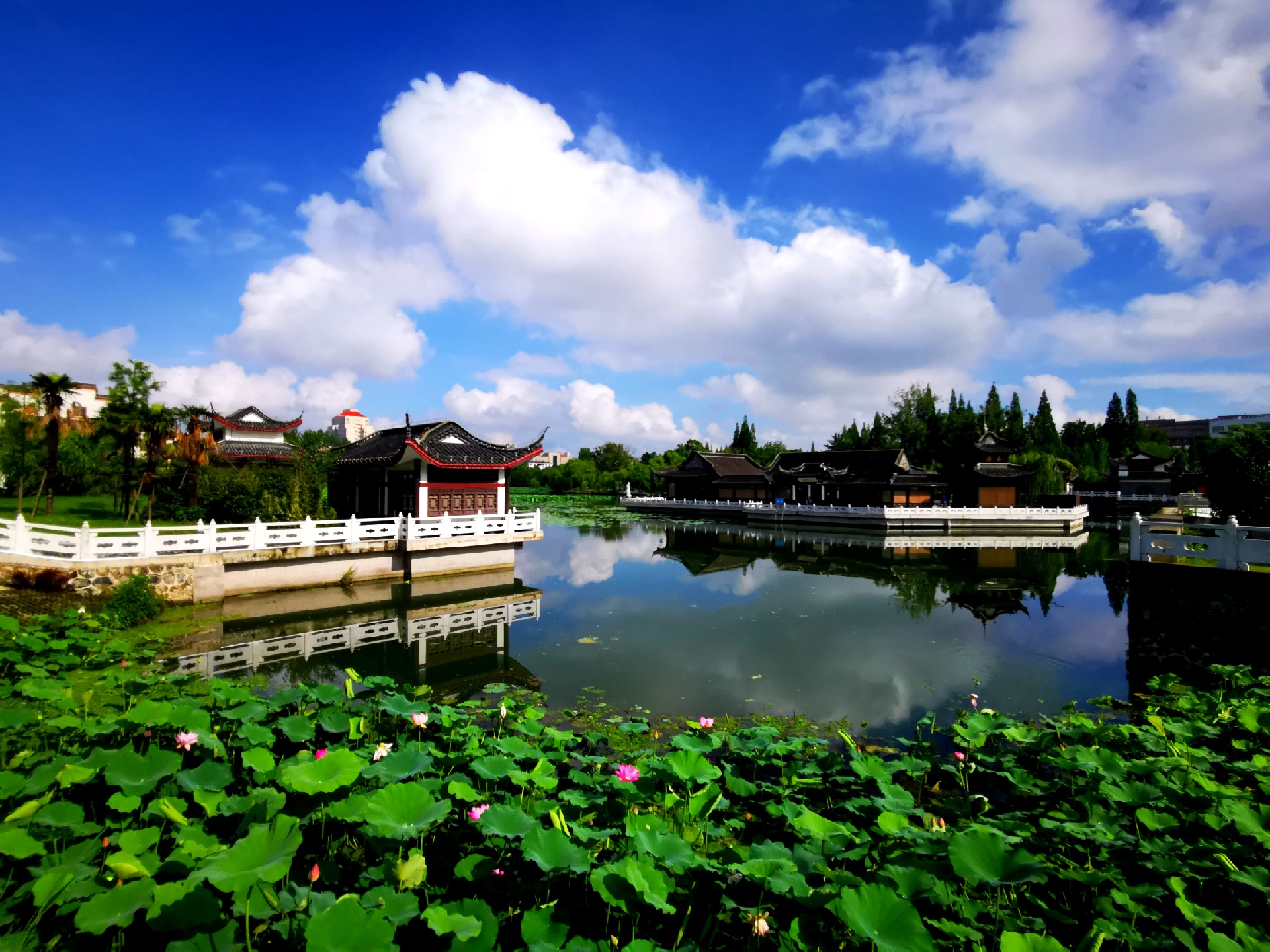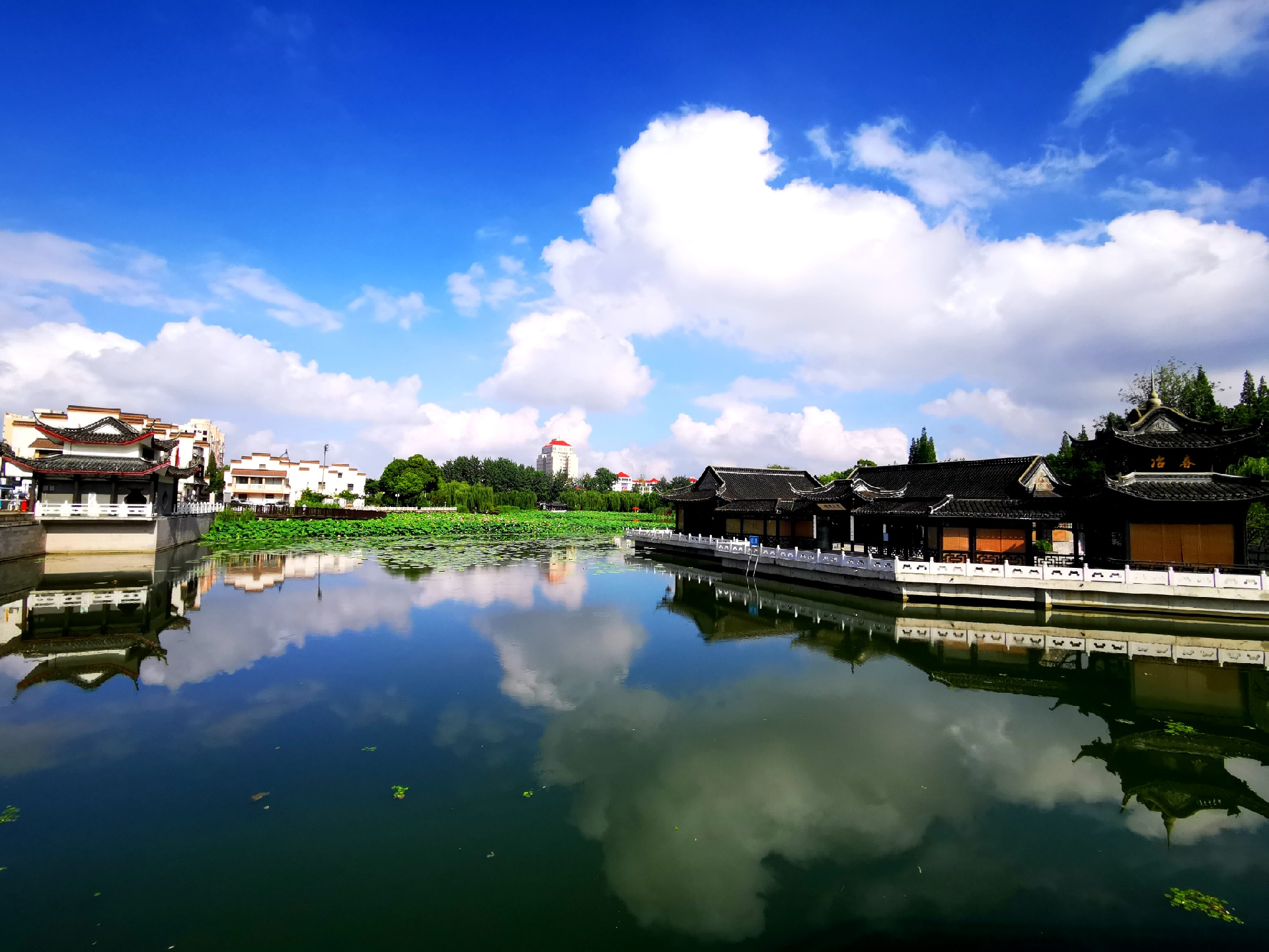 雨后的扬州荷花池公园的美丽风光