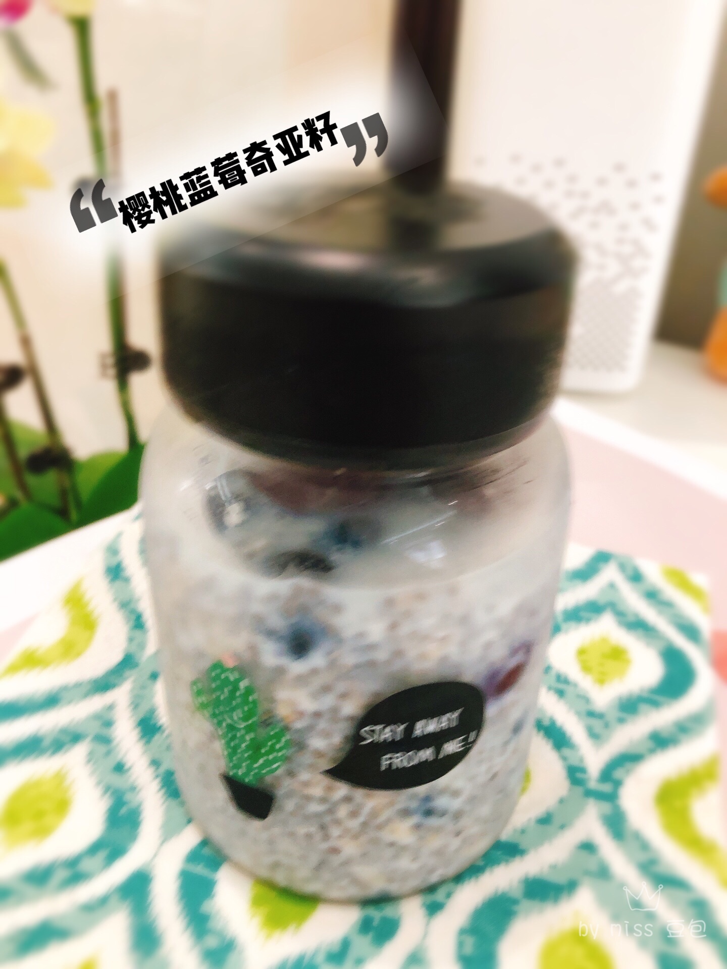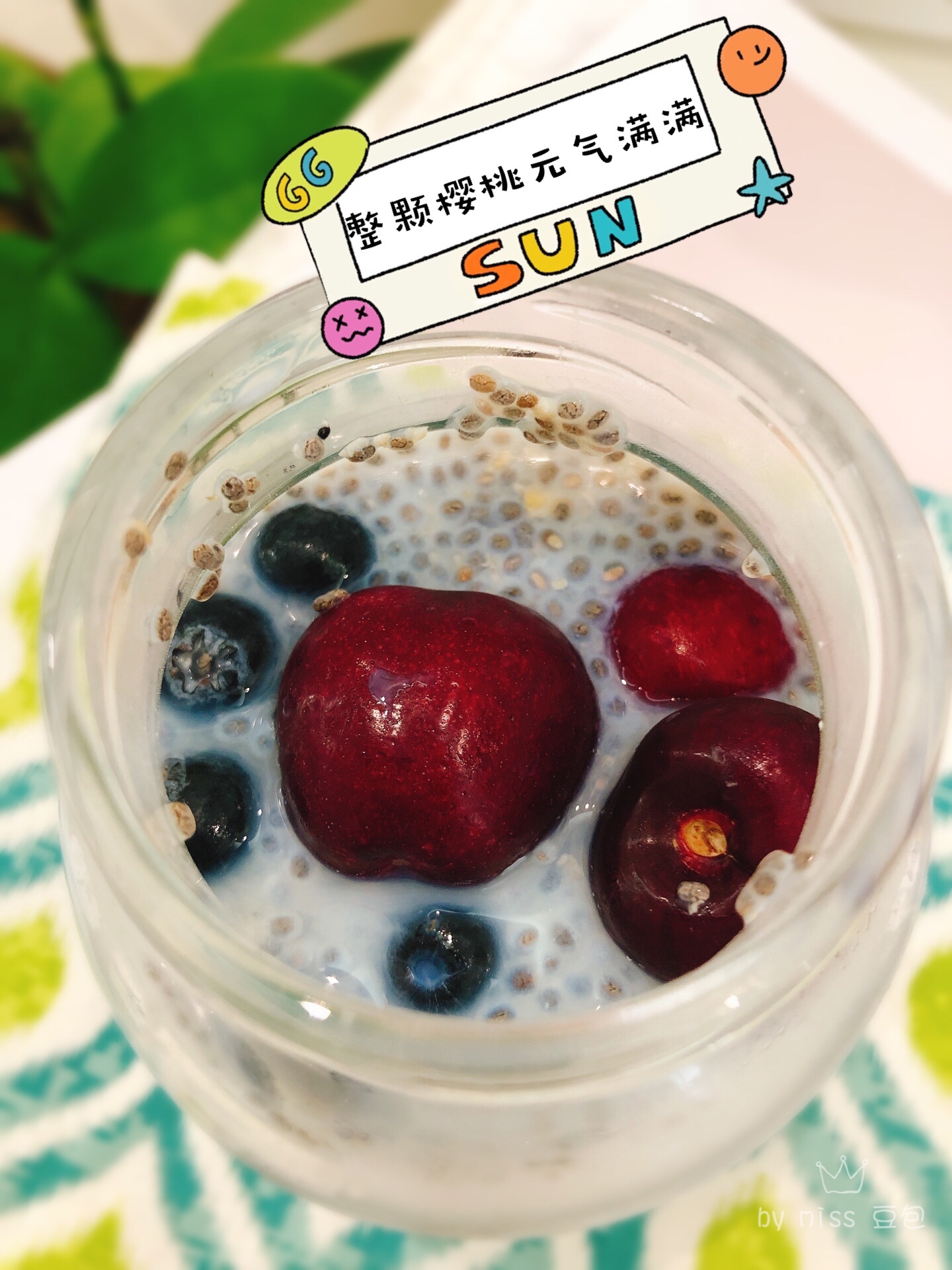 午餐:蓝莓樱桃🍒奇亚籽牛奶杯