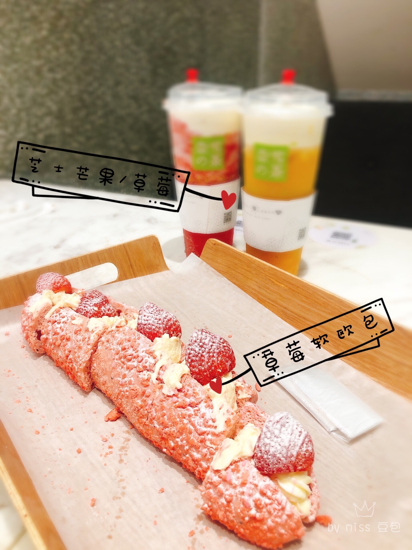 下午茶:#奈雪#芝士芒果/草莓🍓,草莓软欧包