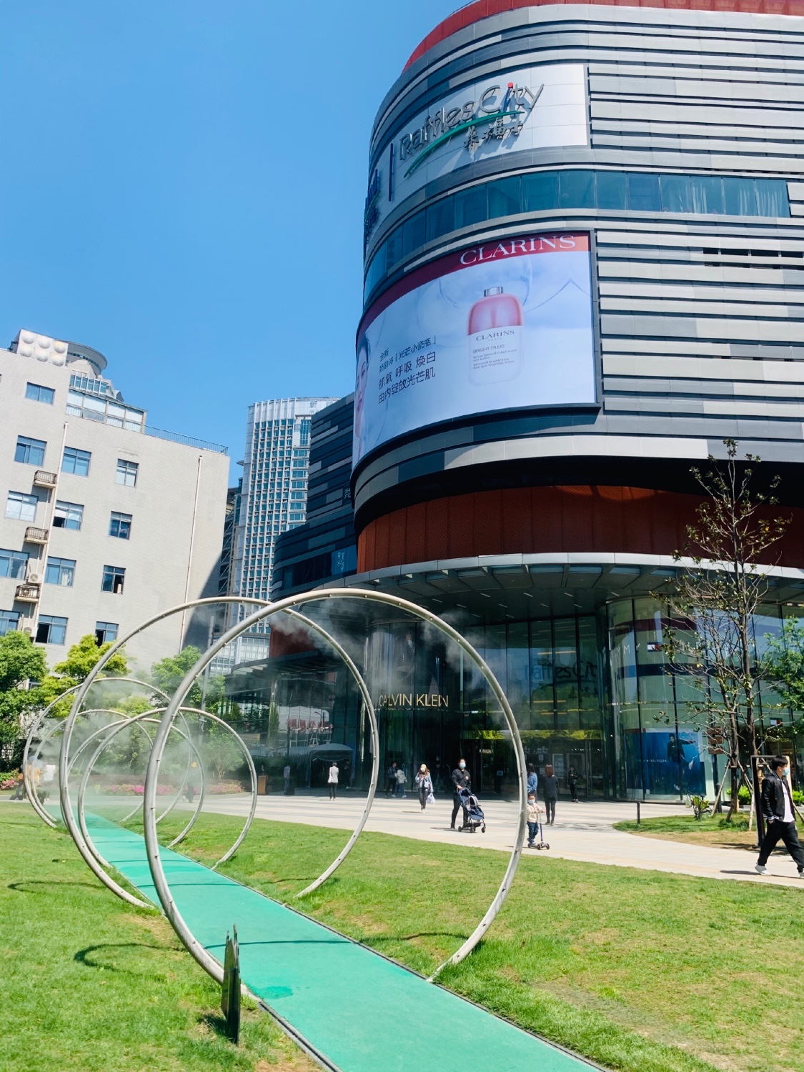 引入了潮流书店和中庭草坪、雨幕秋千等互动装置