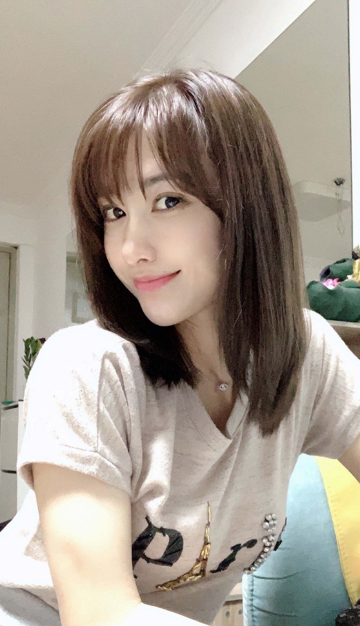 今年流行的锁骨发,终于尝试剪个漫画刘海,茶棕色巨显白太喜欢了,修剪出层次灵动少女十足👍爱了