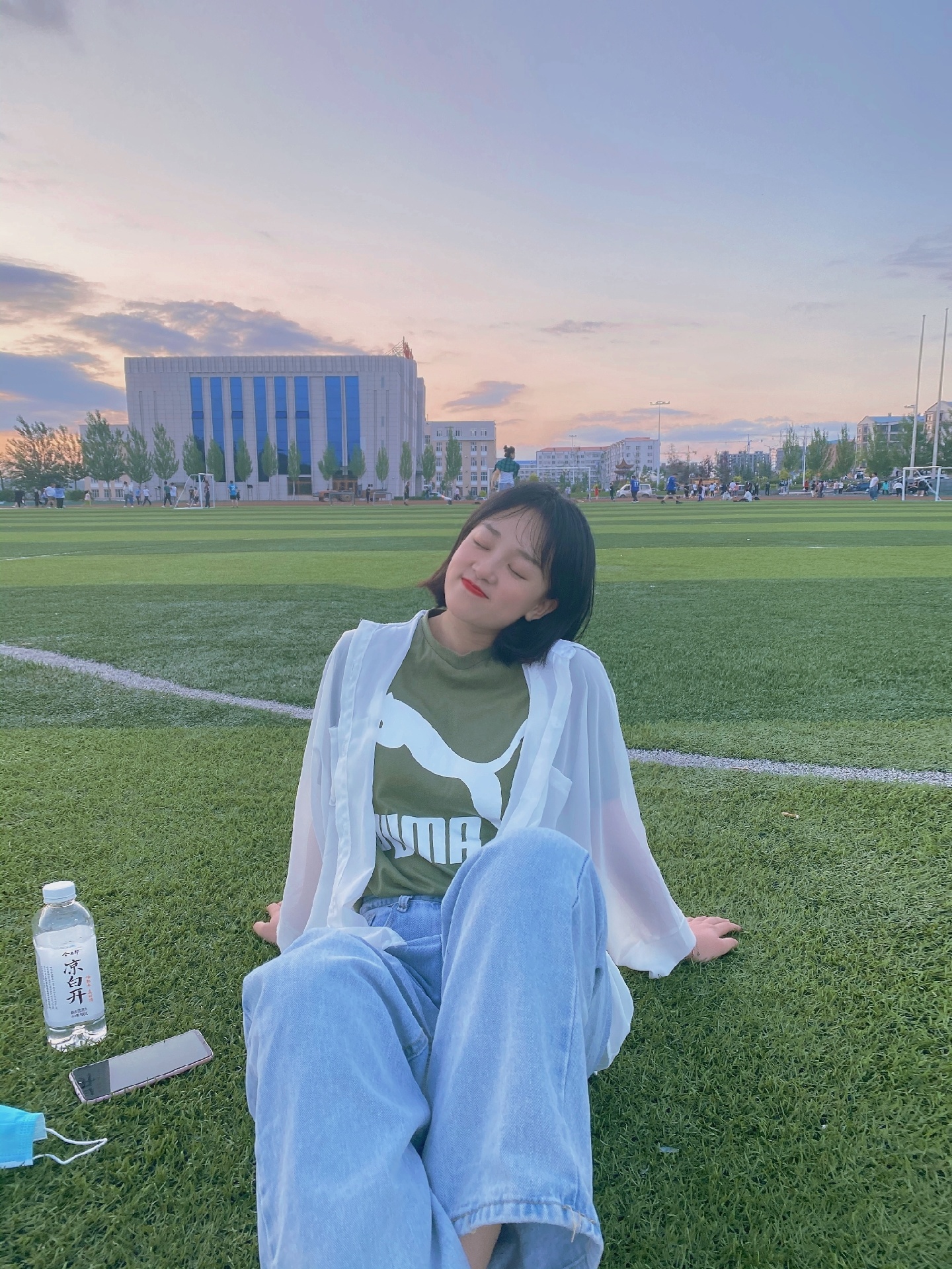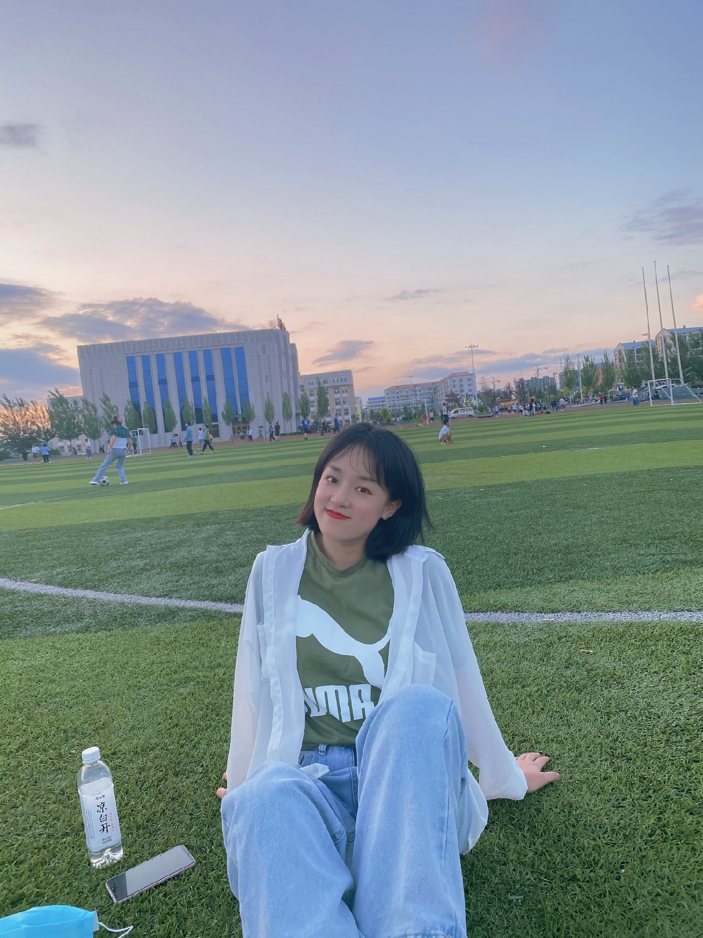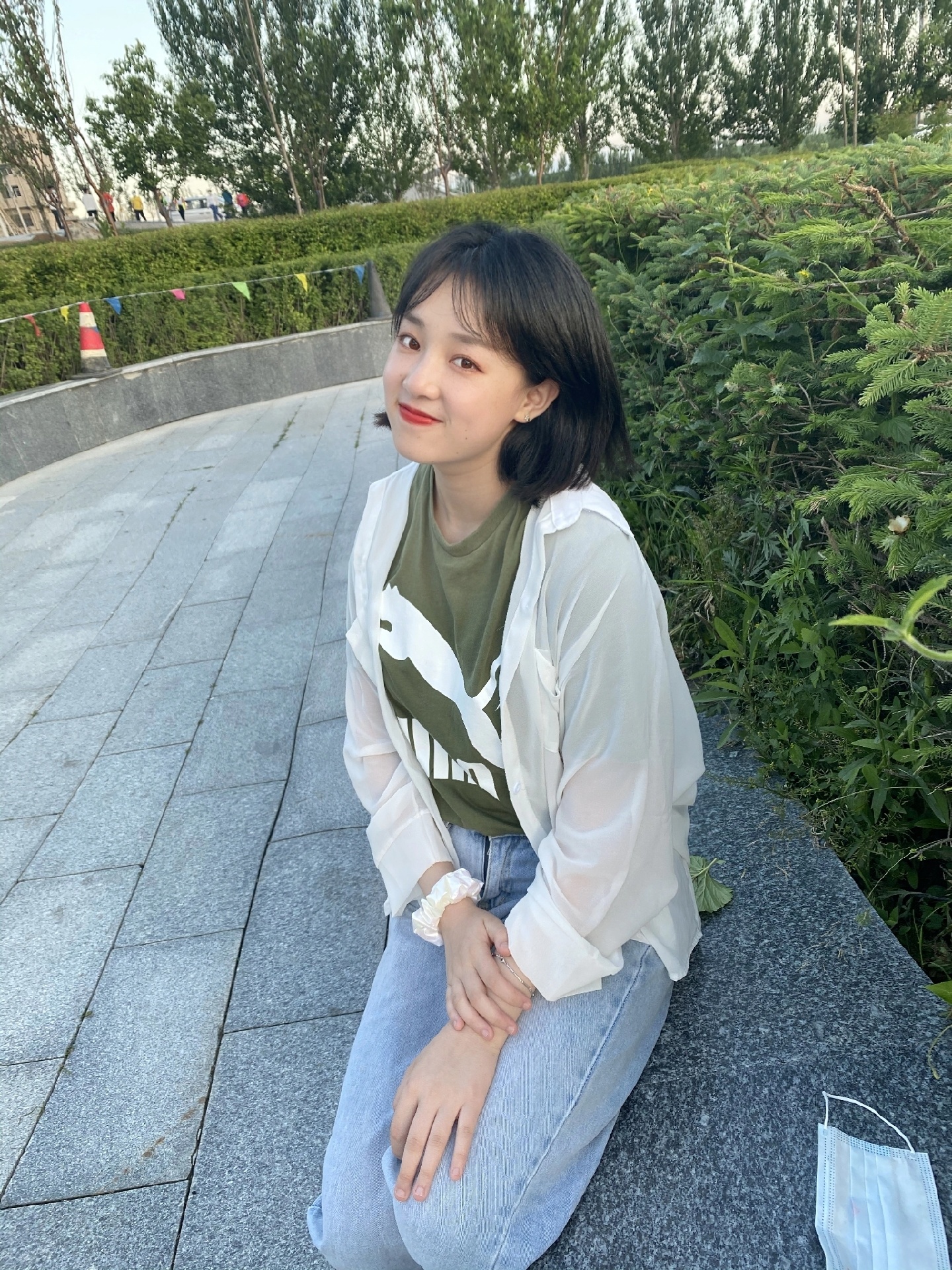 首先是草地,草地拍照真的好看,坐在草地上,双手放在两边,双腿交叉,看着镜头微笑就好啦!身子要离镜头远一点,这样在视觉上会显瘦呦!