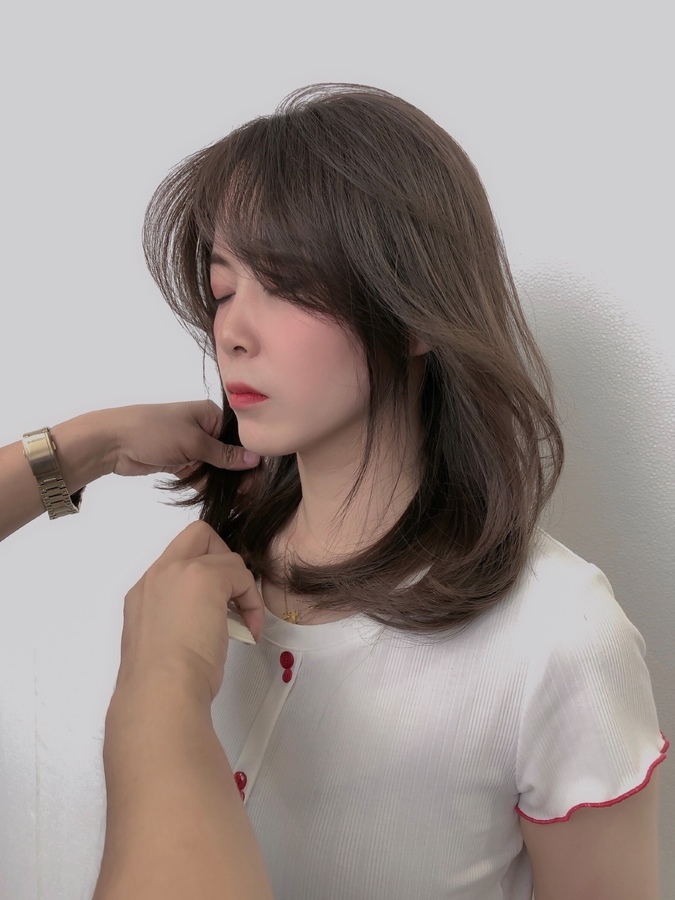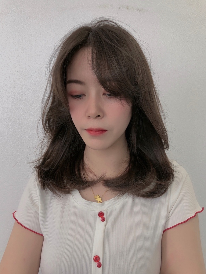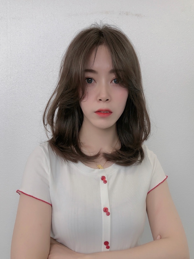 整体发型➕刘海➕灰棕色 可以更好的饰脸型,提升气质,刘海弧度重心位于额位和下巴这样更加显脸小哦