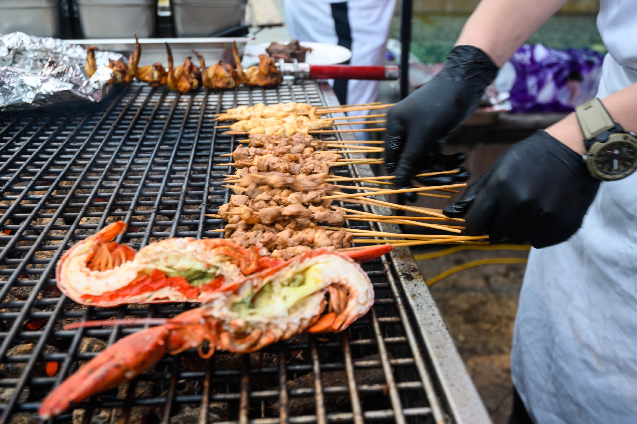 我们晚餐选择在了室外,泳池烧烤真的有在三亚酒店度假的感觉。菜品很多,蟹脚、波士顿龙虾,各种烤肉类都有。如果你喜欢吃热的龙虾,你还可以把龙虾给厨师放在烤炉上,浇上蒜蓉后的味道更加好,强烈推荐。
