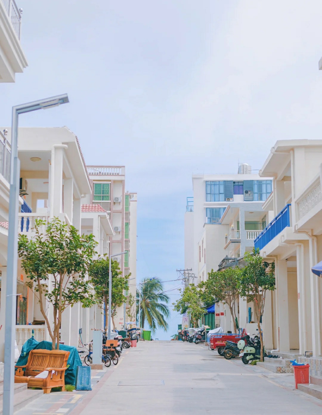小镇分为白龙街、青龙街、黄龙街、黑龙街、红龙街五个街,每个街道都通往海滩,可以坐在街道尽头的阶梯上,数着浪花朵朵🌊