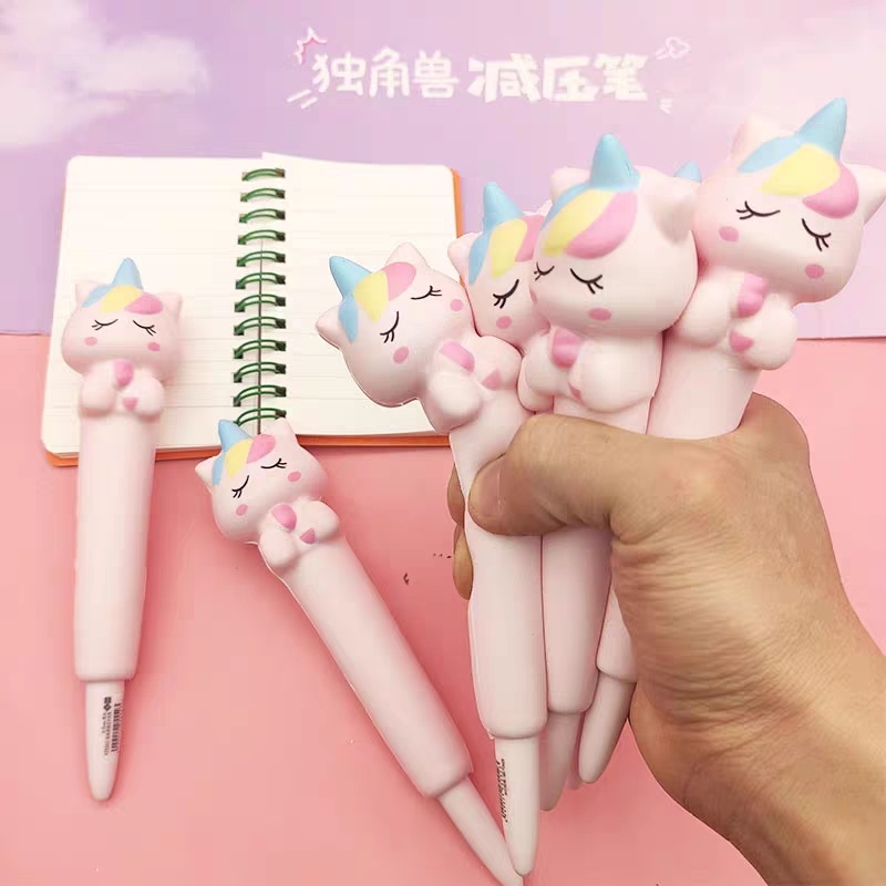 独角兽减压笔可捏笔软绵绵粉小猪可爱超萌中性笔解压创意捏捏笔