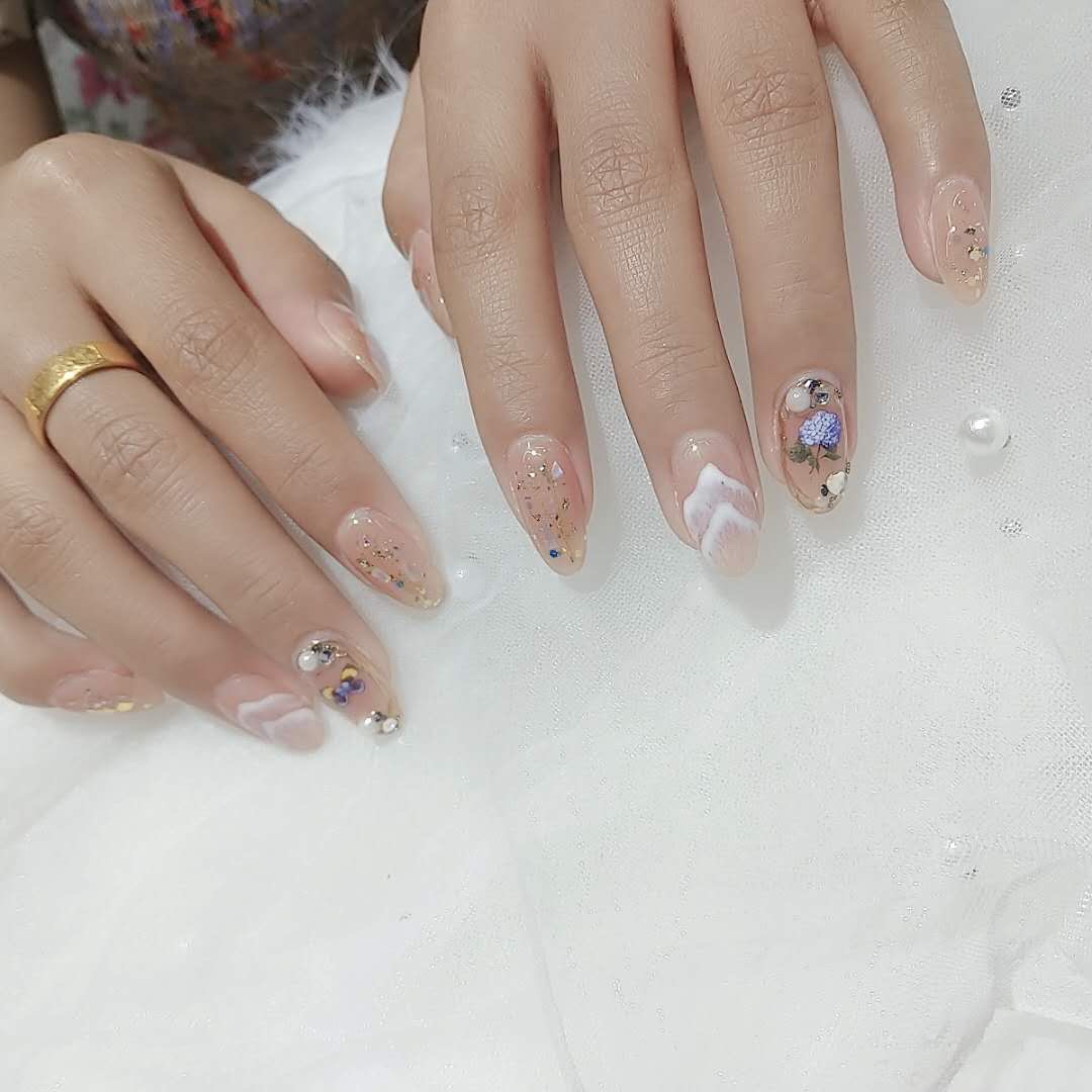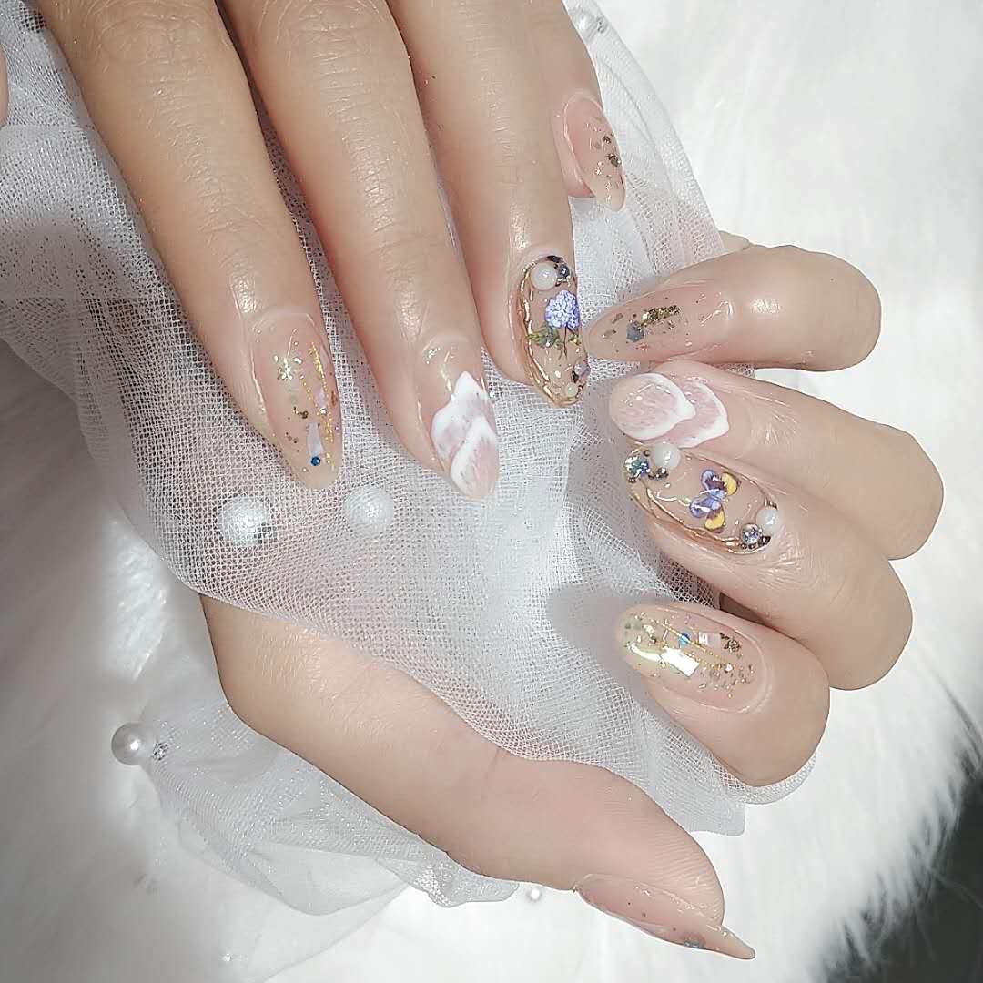 裸色打底山丘纹装饰➕贝壳装饰➕金箔纸装饰……