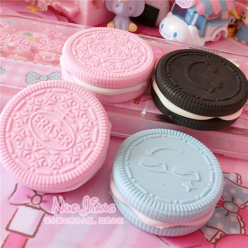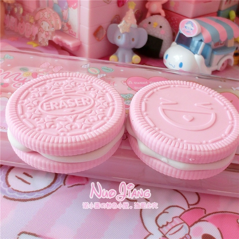 仿真夹心饼干造型橡皮擦夹心粉色蓝色巧克力学生橡皮擦文具用品