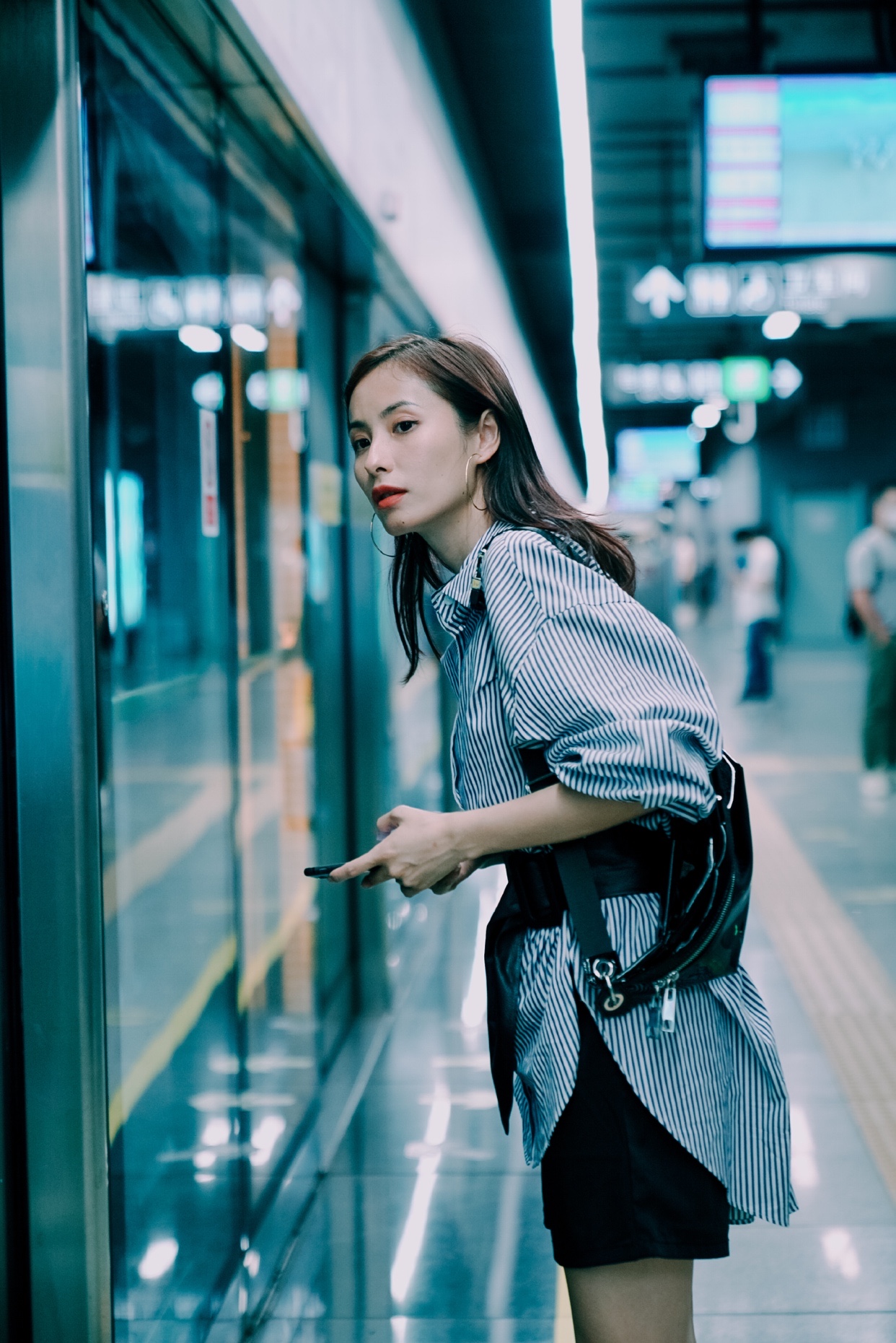 图1⃣️ 拿着手机 然后不经意看看地铁来了没,作起来😄