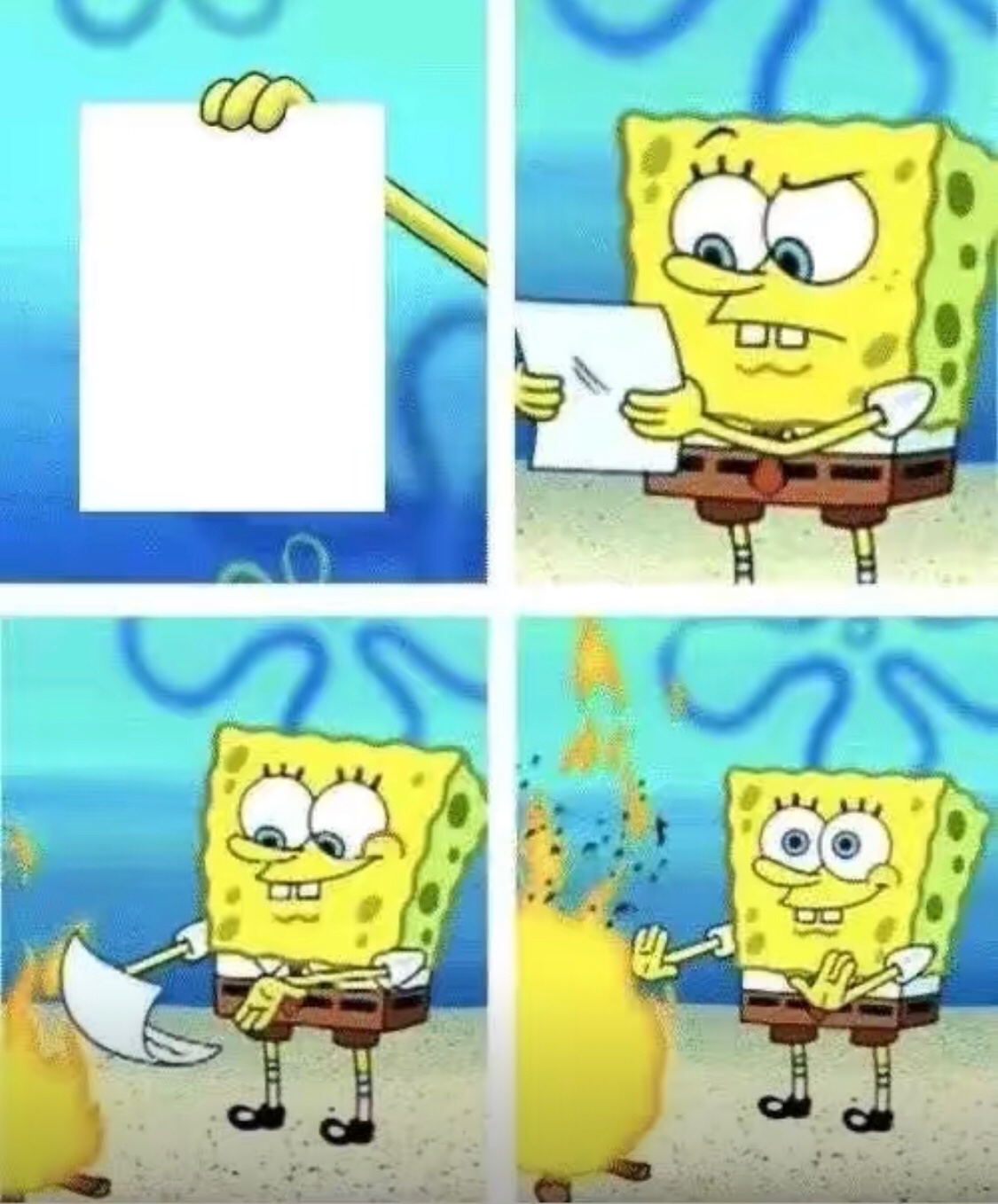 纸上写的是什么?还是画了什么?为什么海绵宝宝看完眉头一皱,紧接着就给烧了呢,快发挥你的脑洞,把内容补充在图片上吧~