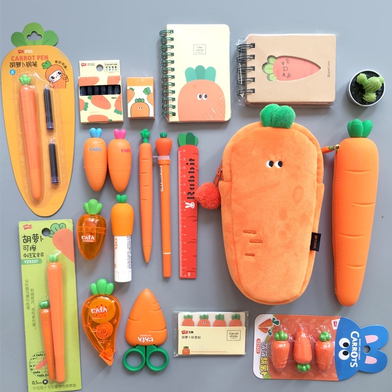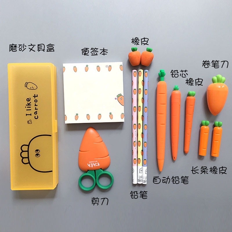 韩版创意卡通胡萝卜文具套装软硅胶可爱自动铅笔橡皮学生礼物盒-美图社区-美图秀秀