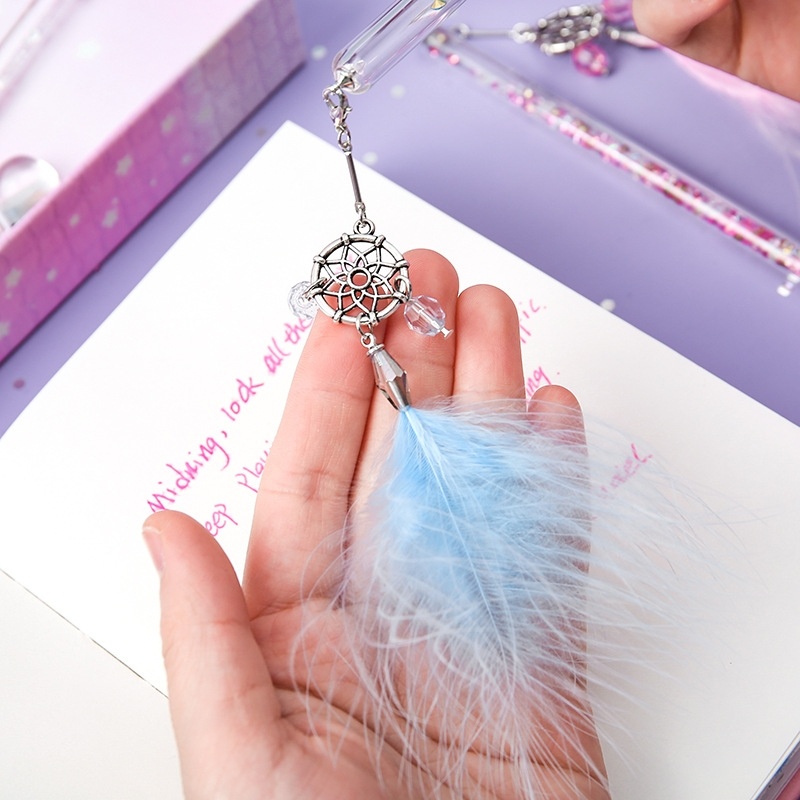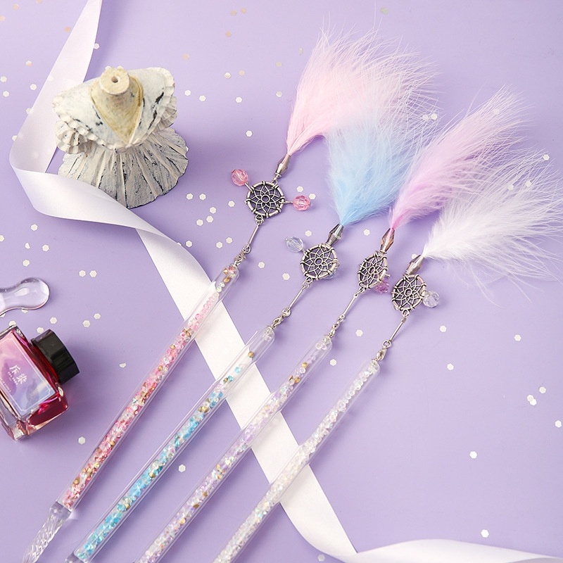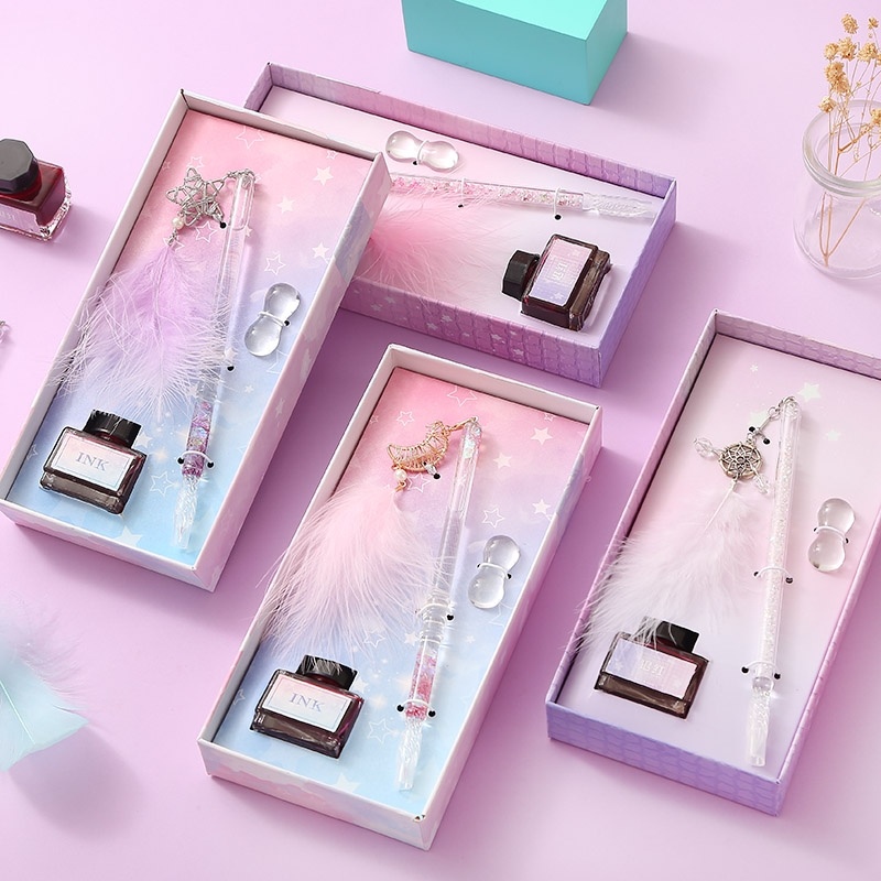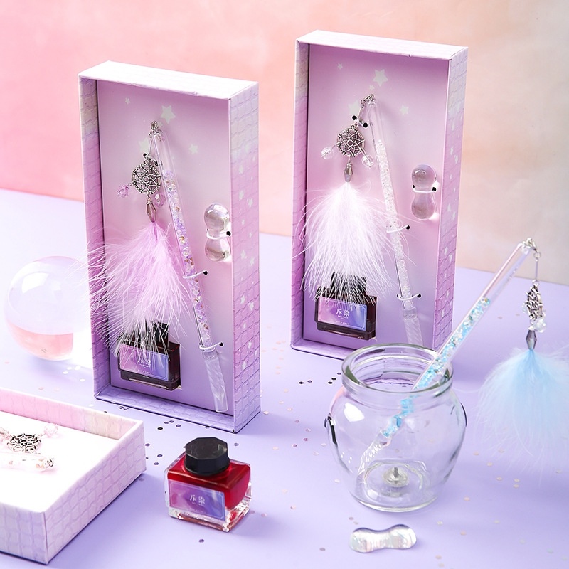 羽毛ins玻璃笔钢笔少女心蘸水笔套装生日礼物礼盒学生用可爱网红仙女水星空琉璃笔礼品