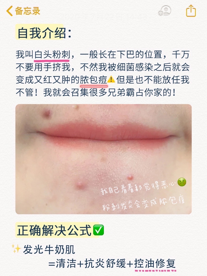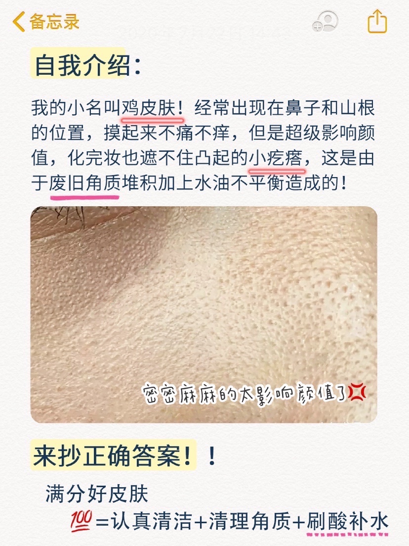 从高中开始就发现脸上长了像鸡皮疙瘩一样的小颗粒刚开始还以为是闭口呢,用粉刺针挑过,结果什么也没挤出来!虽然不痛不痒,但是有个致命的问题就是平时化妆完全遮不住,超级明显,还特别卡粉,快被自己丑哭了!