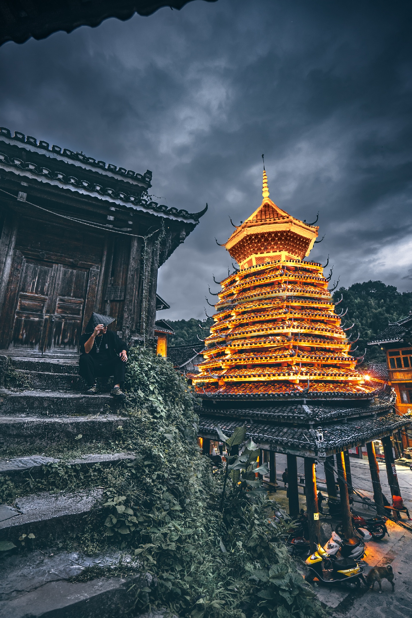 图一图四是同一个鼓楼,两个机位,造型参考日本摄影师Rk的风格,斗笠加羽织。
