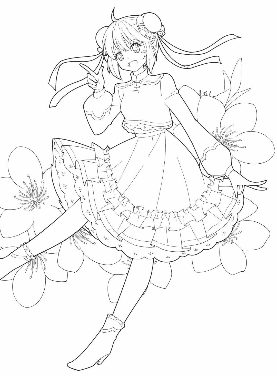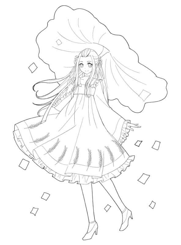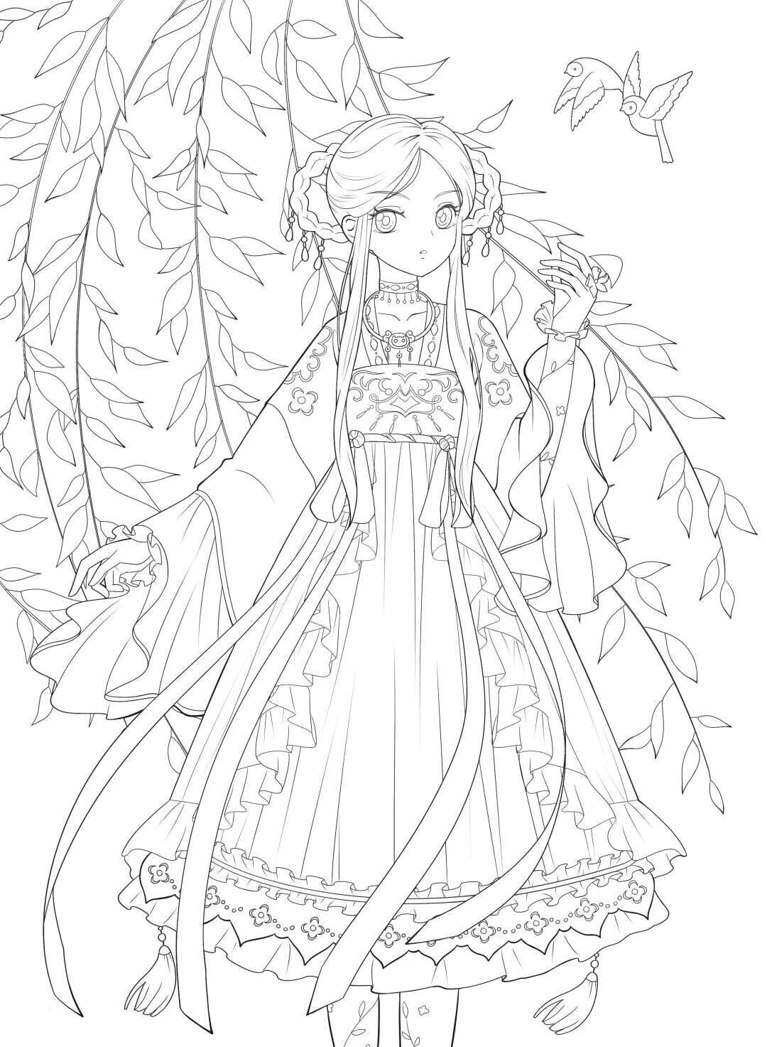 穿汉元素洛丽塔的动漫少女线稿,快来看看吧。