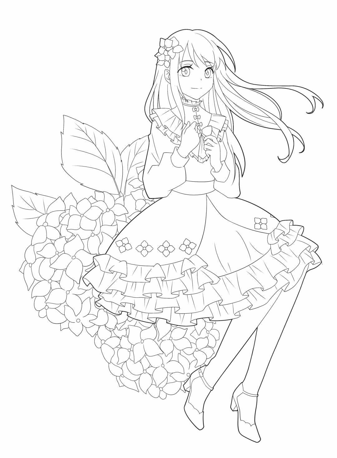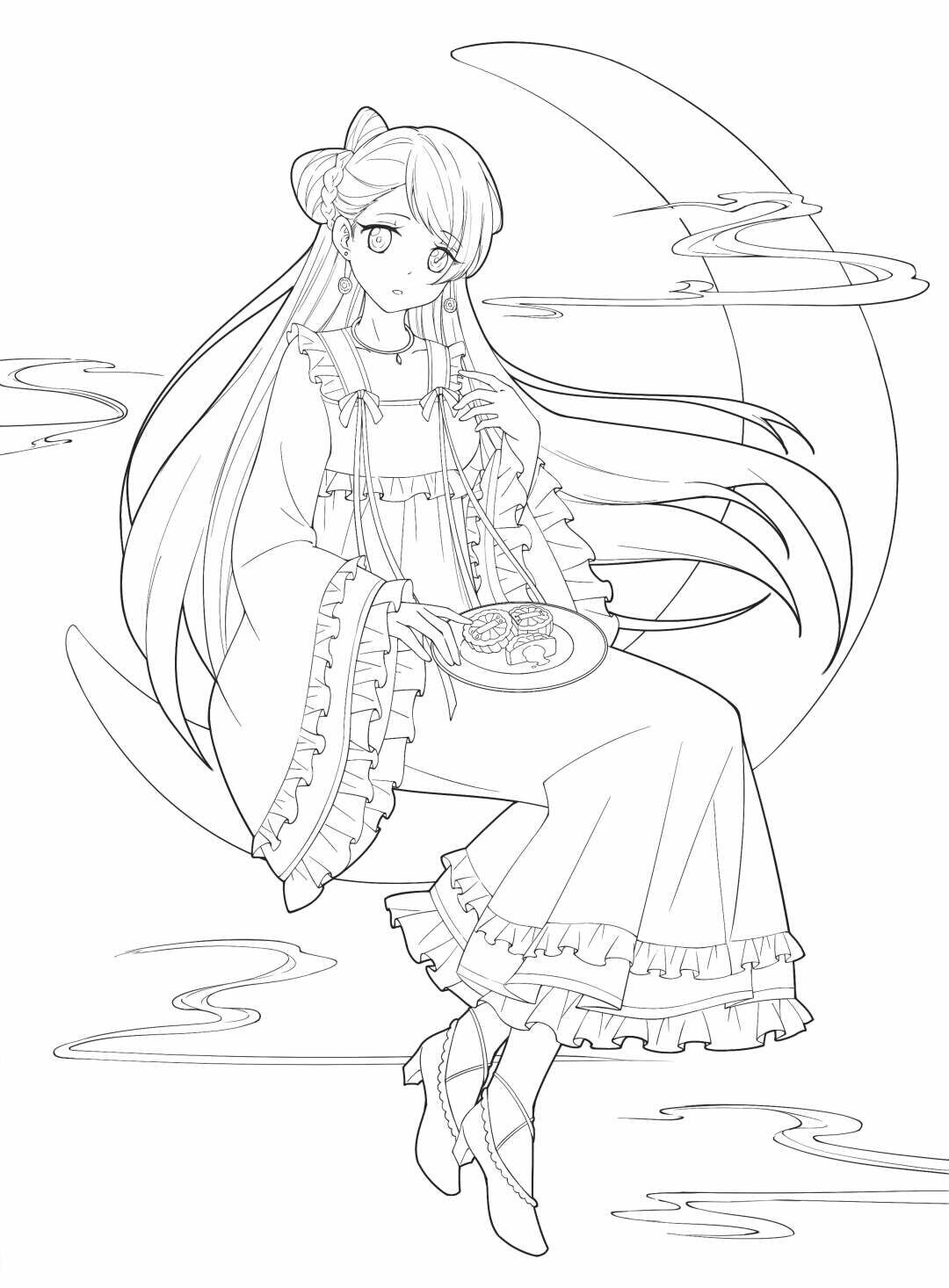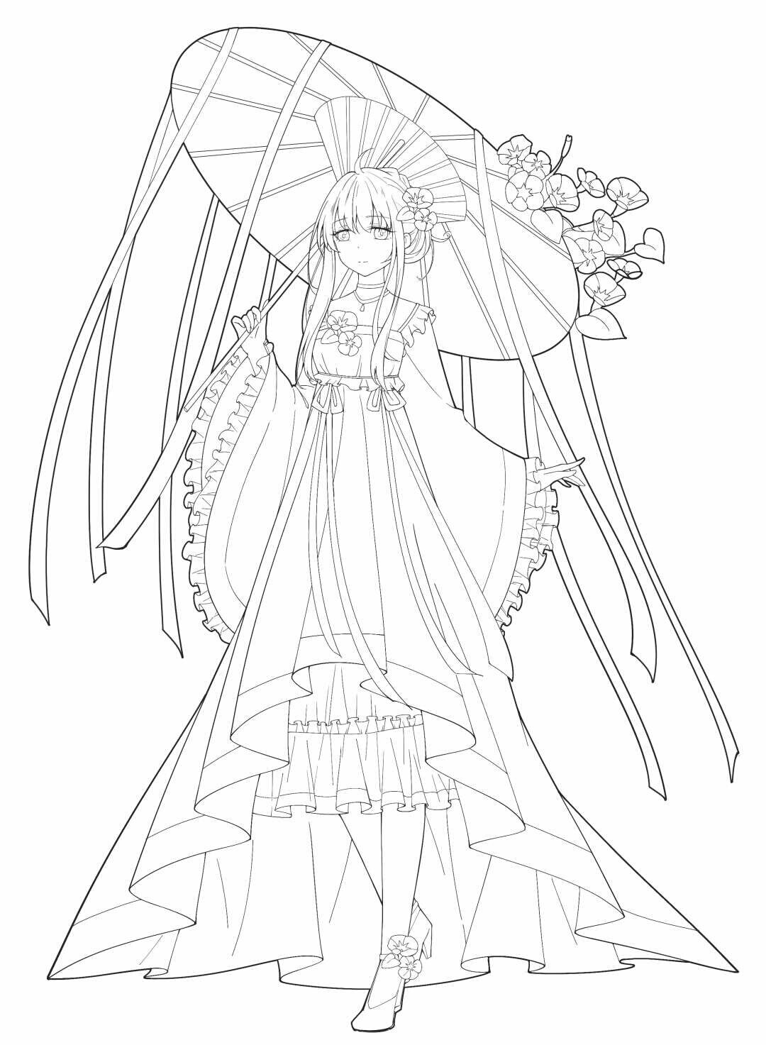 穿汉元素洛丽塔的动漫少女线稿,快来看看吧。