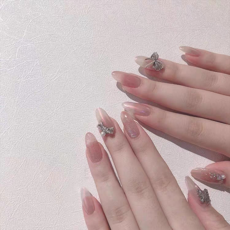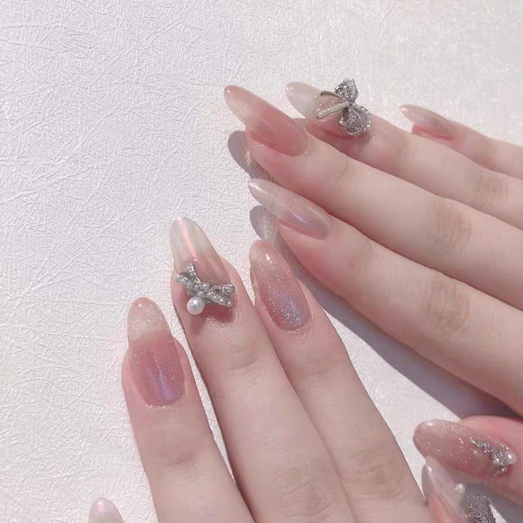 #美甲种草#🌟极光粉美甲最简单的就选择纯色系🍃,透明粉色,搭配光泽感有了珍珠色泽🍥,实在是温柔又高级🍸,低调的气质仙女必备!🌟如果觉得纯色系太素净🍈,不如加上别的元素点缀🍨,类似蝴蝶钻饰、亮片胶晕染🐟,都可以让美甲变得与众不同哦~