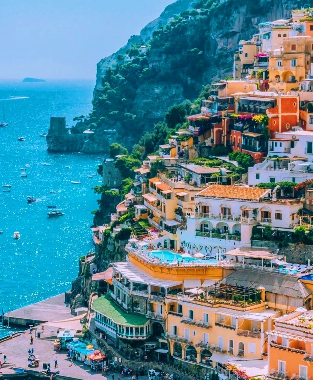 #环球旅游攻略# 盛夏,欧洲最美小镇——意大利波西塔诺的清晨,清新温暖的惬意时光,简直是美极了。♡(*´・ω・)(・ω・`*)♡~*