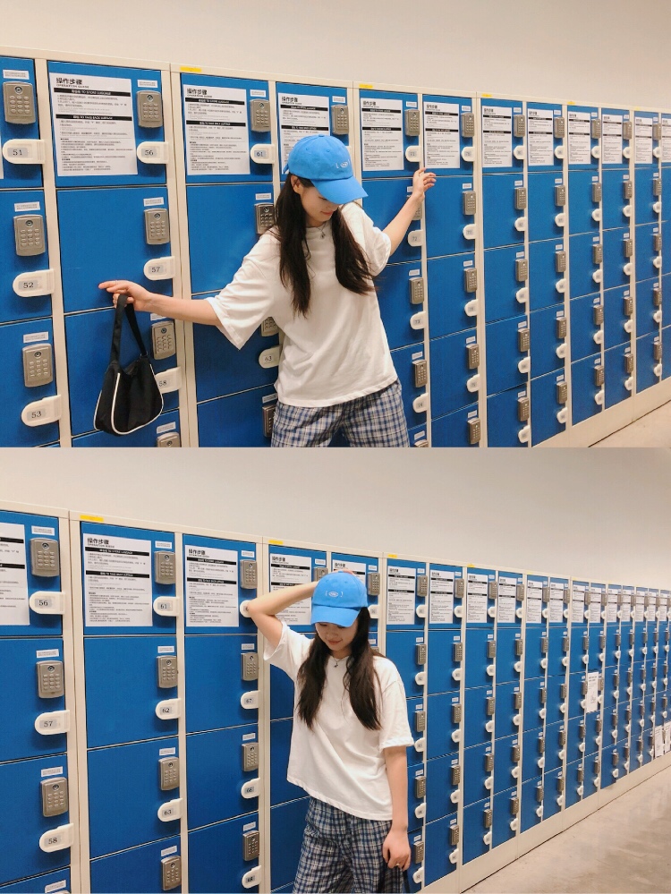 1️⃣背靠储物柜双手打开(动作幅度尽可能大一点)单手扶头微微低头