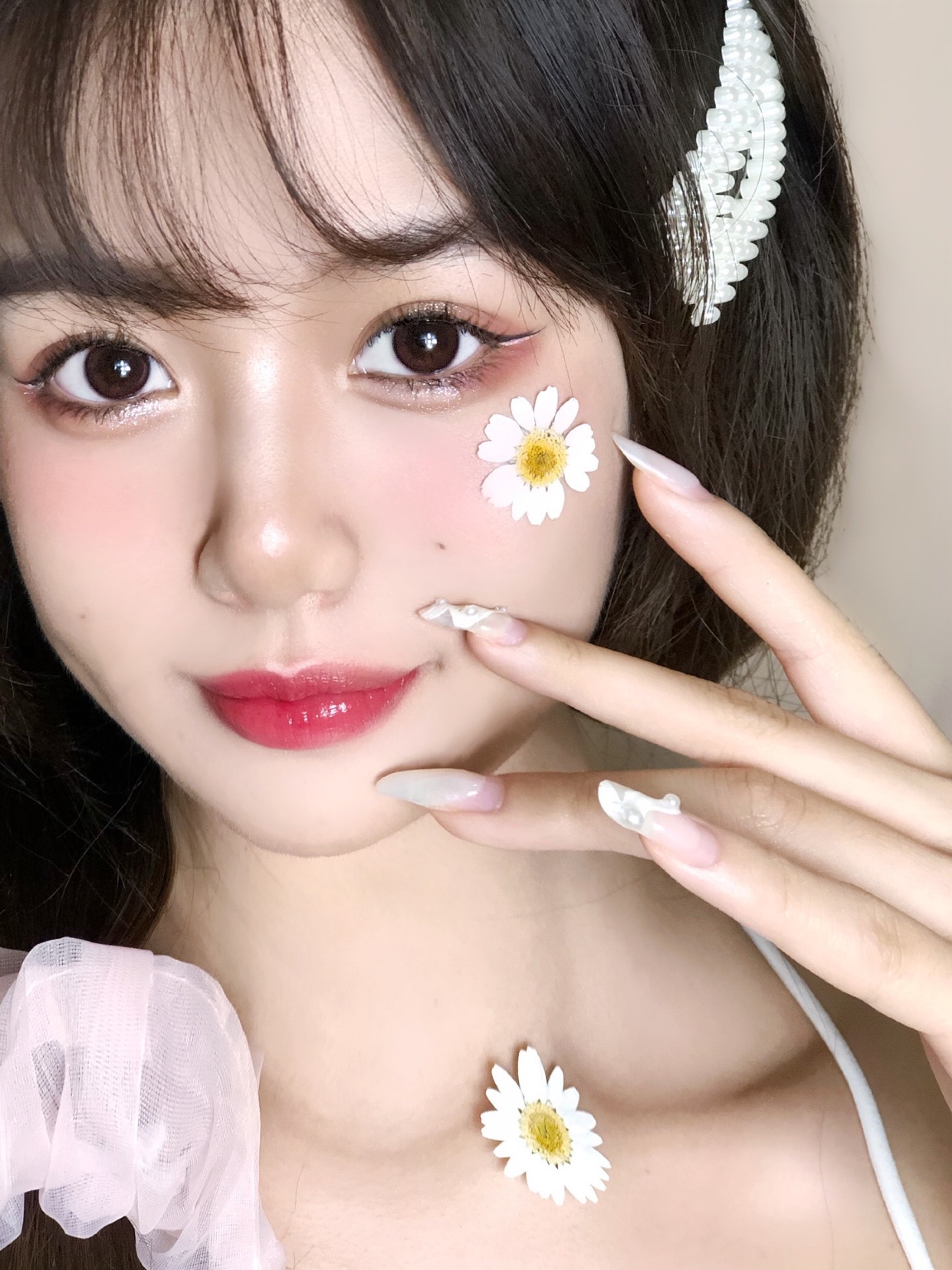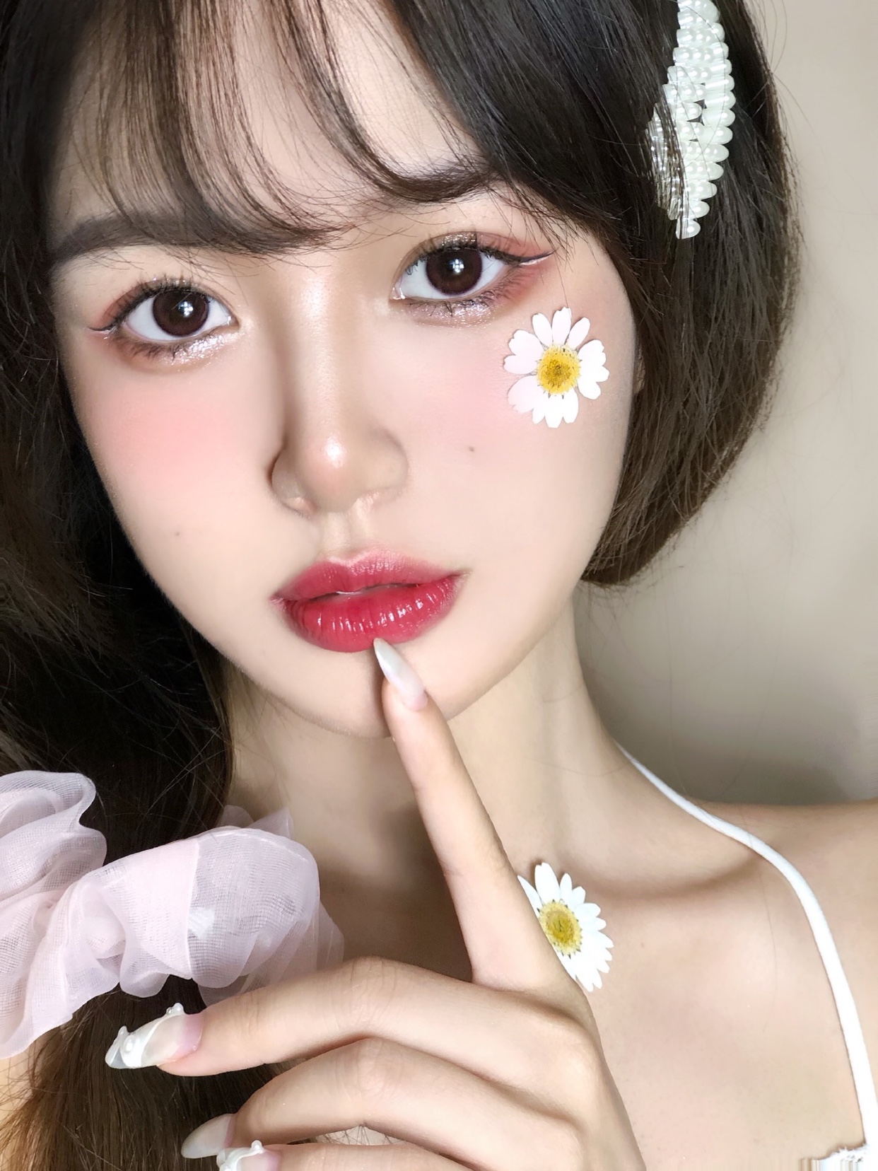 比如有些女孩子在跟男友一起的时候不想完全素颜但是也不想要大浓妆 ~那么就可以参考这个妆容啦!