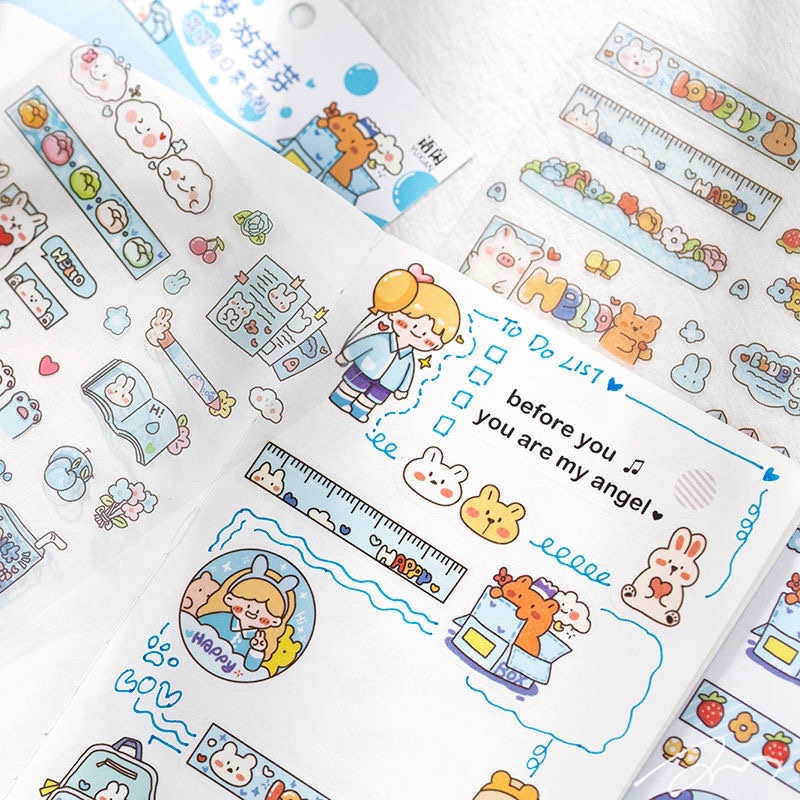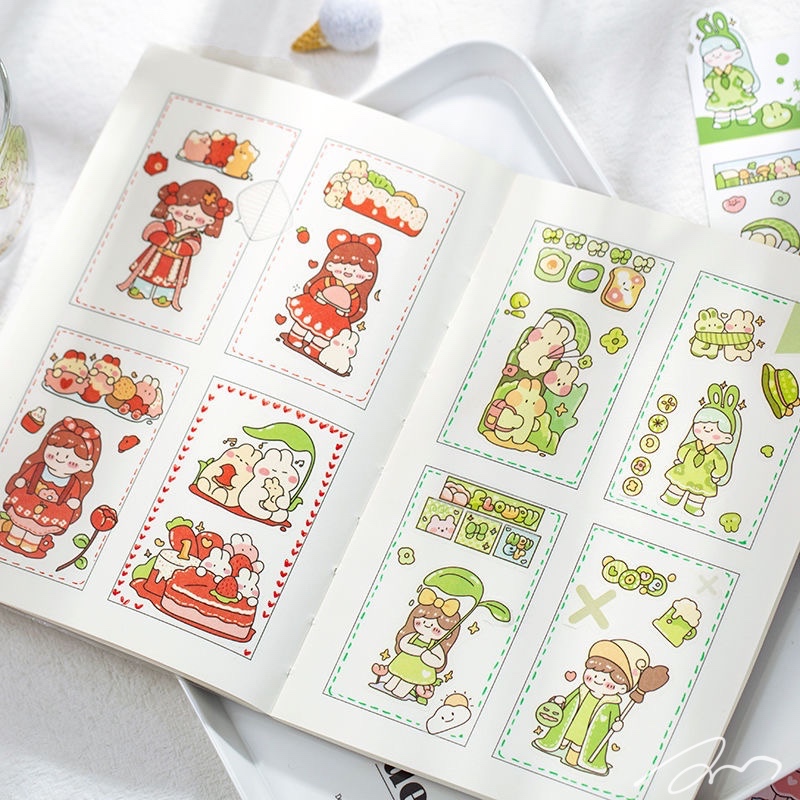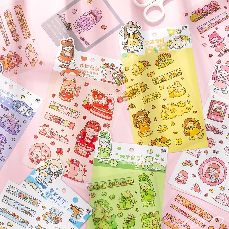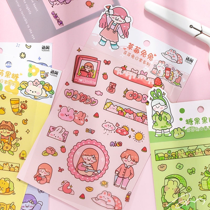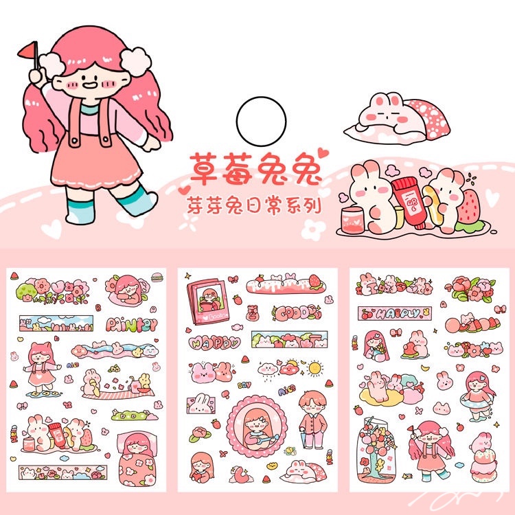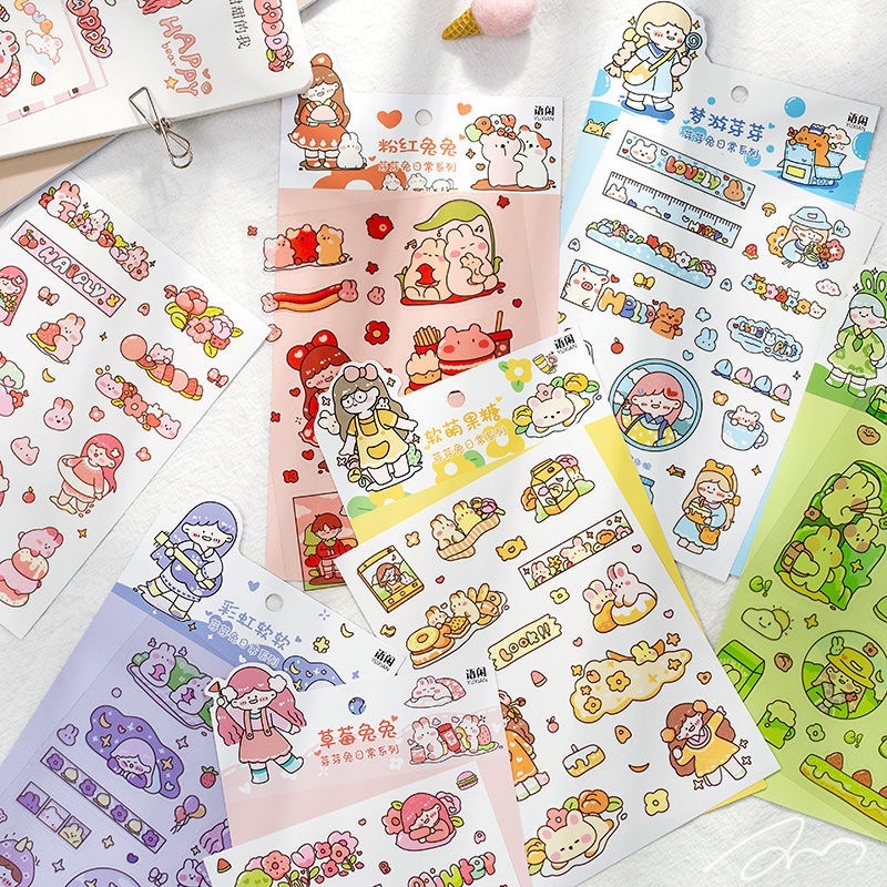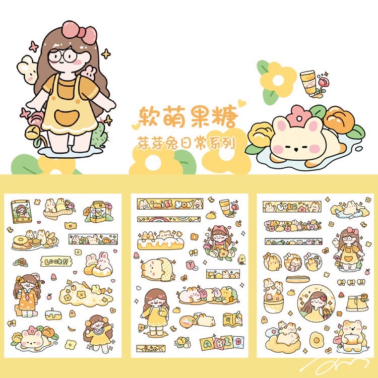 手绘防水贴纸 芽芽兔系列可爱卡通手帐日记DIY素材装饰贴6张入6款