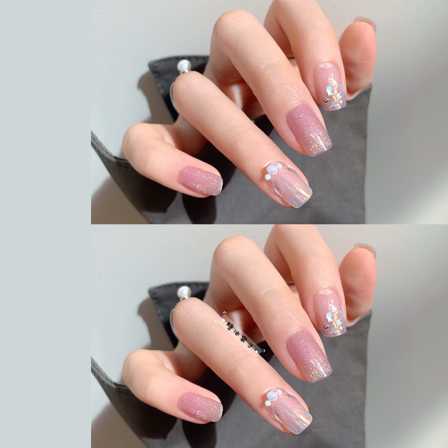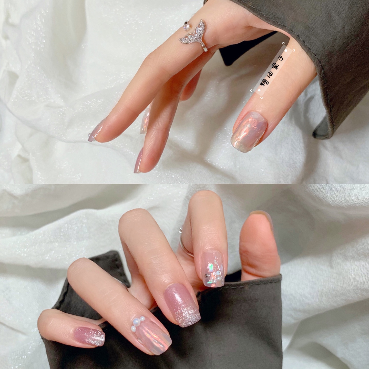 🐚上次做了一款又甜又sa的蓝紫极光立体贝壳美甲,今天和小可爱们分享一款甜美又温柔的极光人鱼贝壳晶石猫眼美甲。温柔的冰透裸粉色搭配晶石猫眼,气质中多了一份优雅。渐变粉紫色立体人鱼贝壳搭配黄橘偏光的极光粉,低调中多了一份小心思,两个的搭配如同掌上珍珠一样,不同的光线折射出贝壳偏光的魅力。大拇指的粉紫和冰透粉的随意涂刷搭配模型胶随意堆的水纹,如同日落下的海平面。