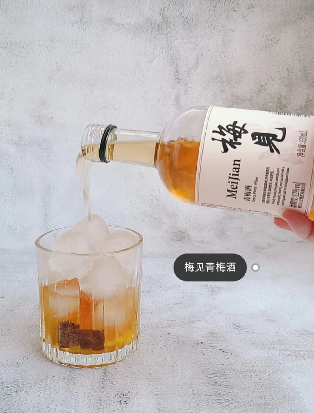5.倒入半杯梅见青梅酒。