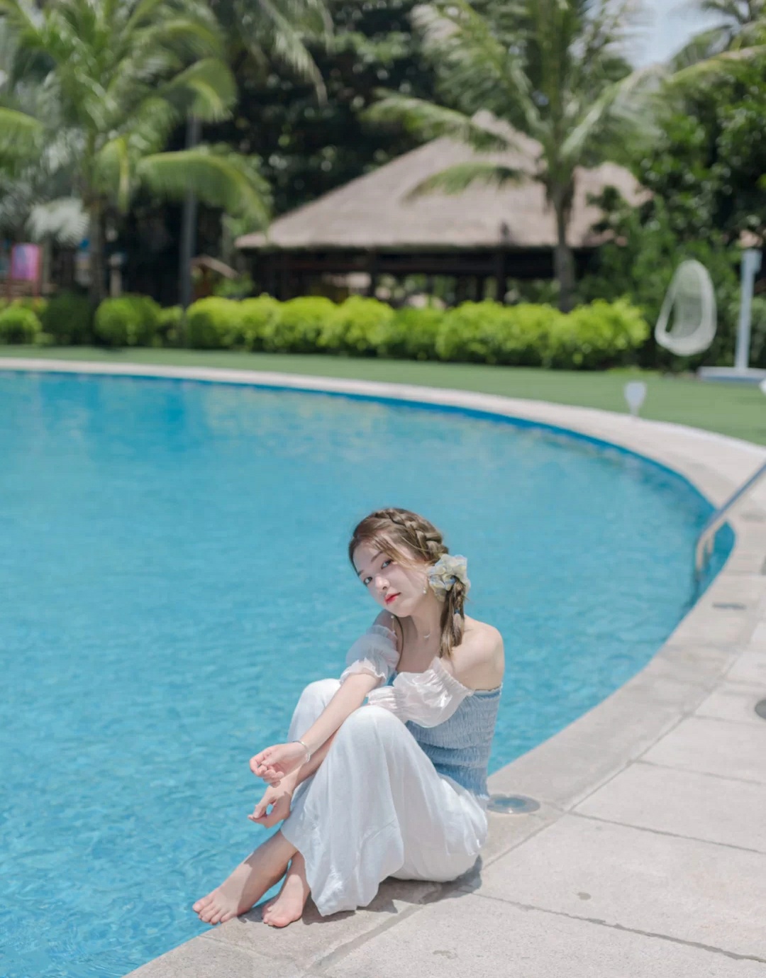 也能拍出清新的泳池照。